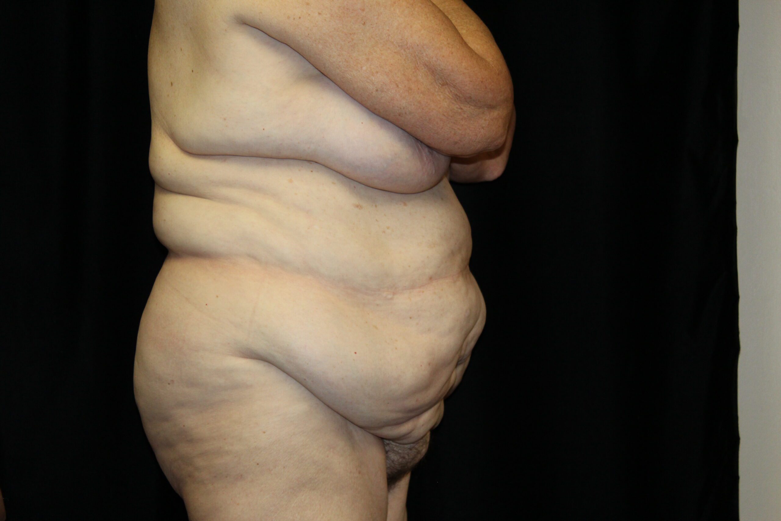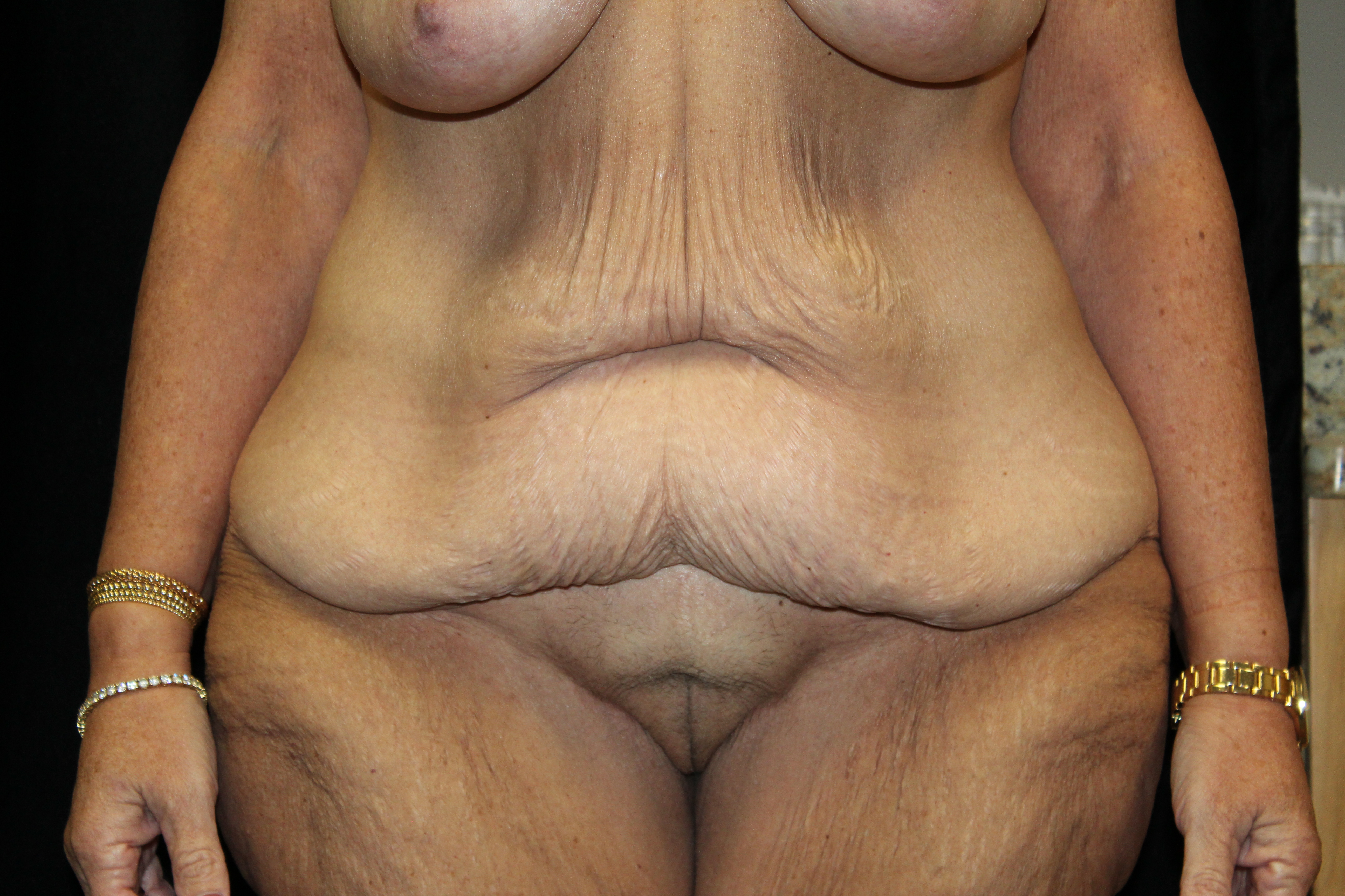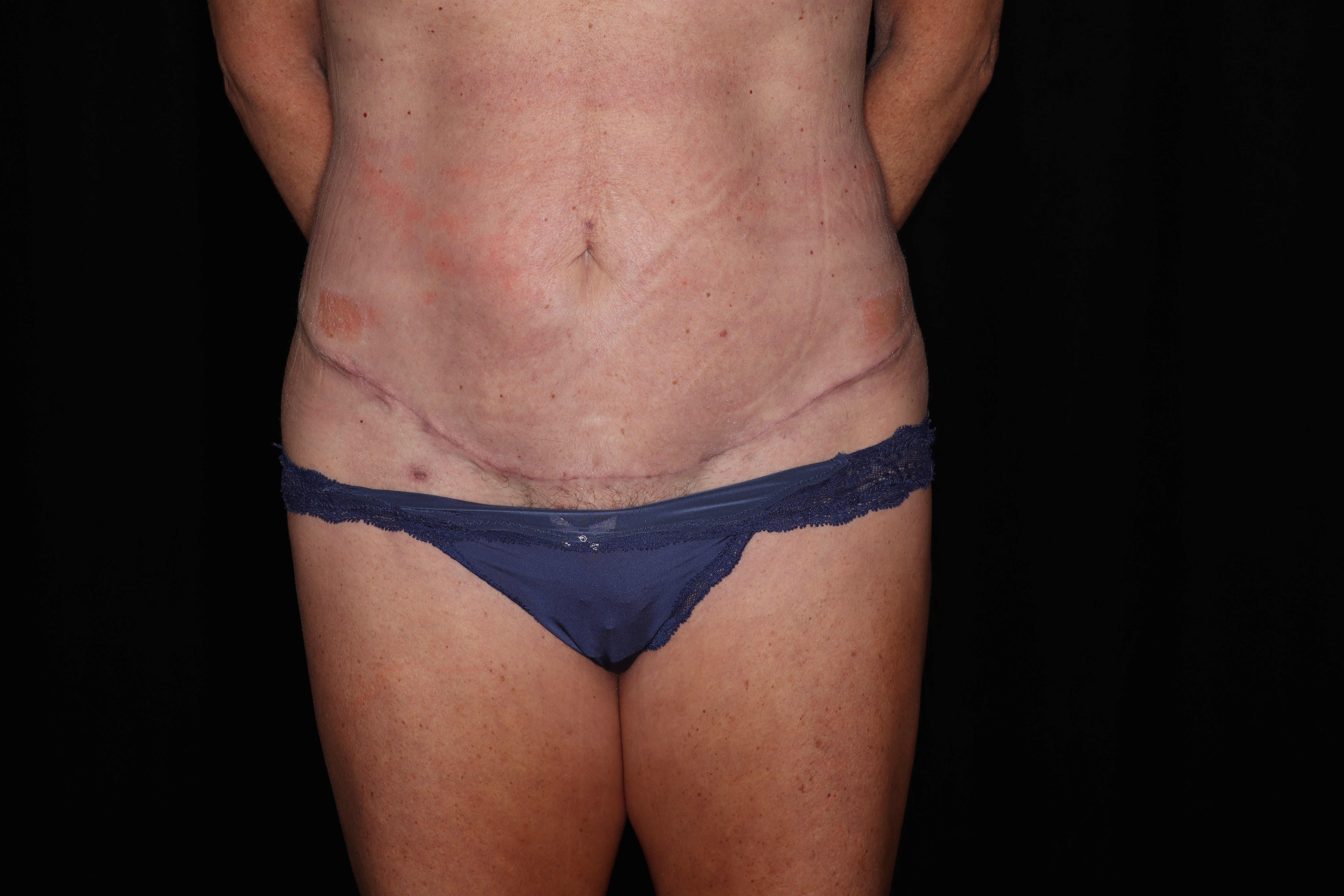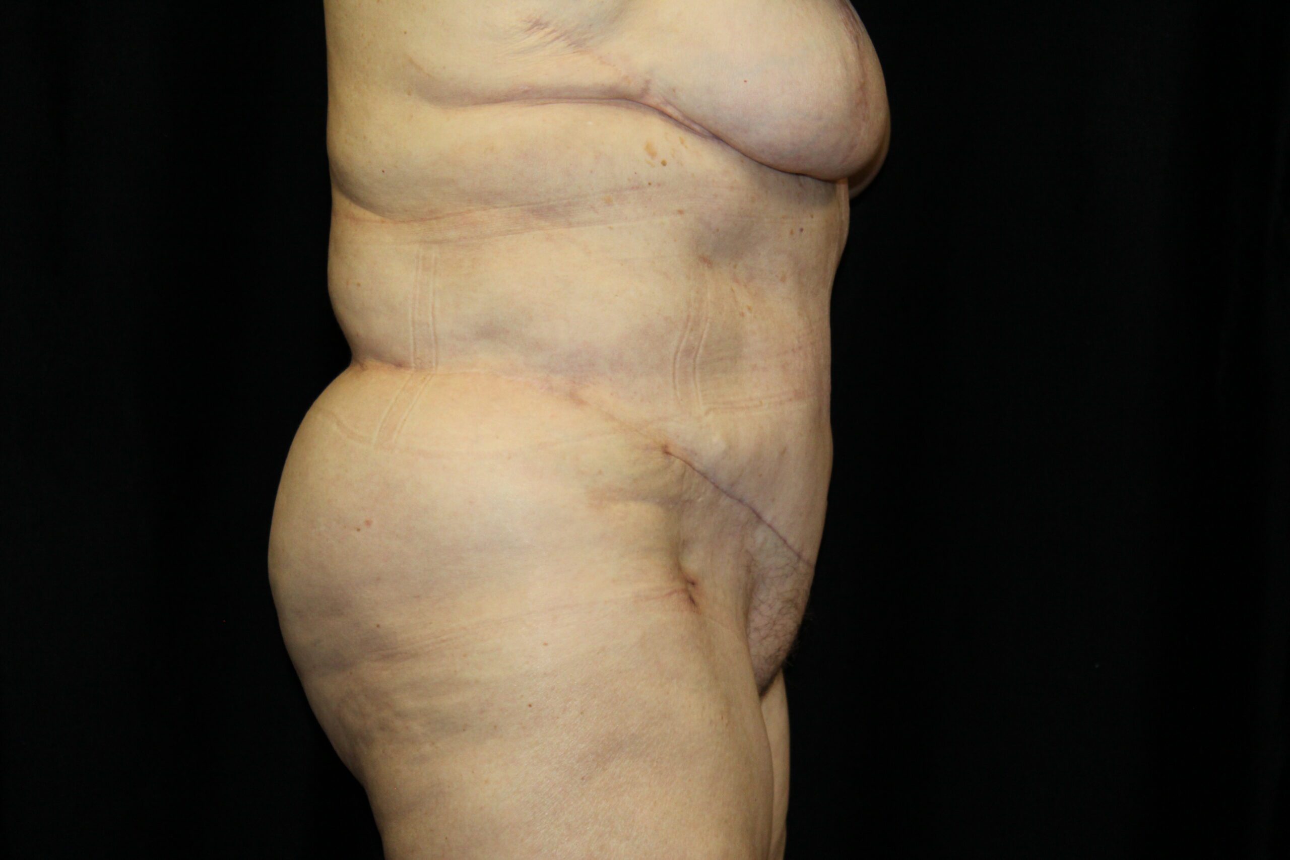 This is a 62 year old lady that had excessive skin and fat around the waist area. It gave her significant problems with wearing clothes. The mons pubis was sagging and causing irritation. She underwent a belt lipectomy. This procedure removes excessive fat and skin all the way around the waist area. It gives a better contour to the upper abdomen and the mons pubis was defatted and raised. She is now able to wear anything that she desires.