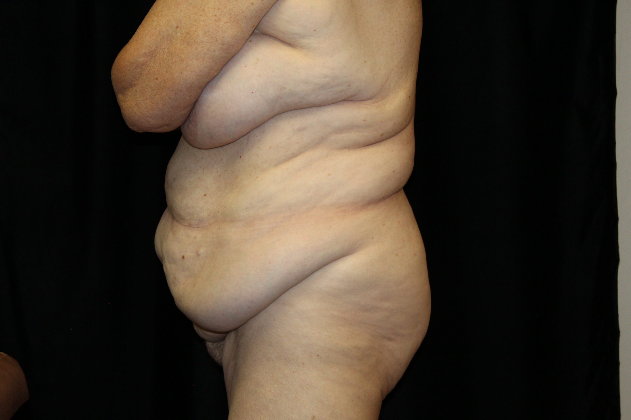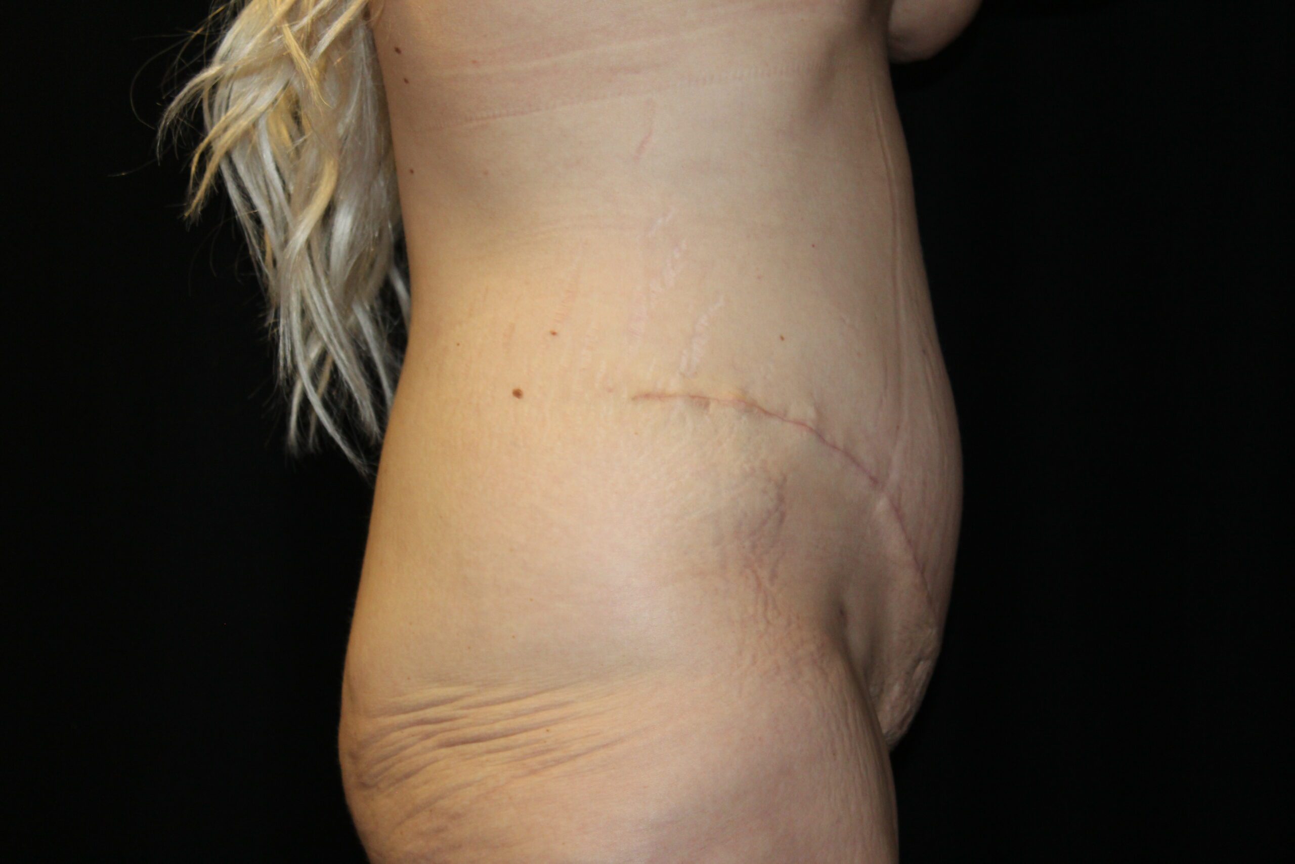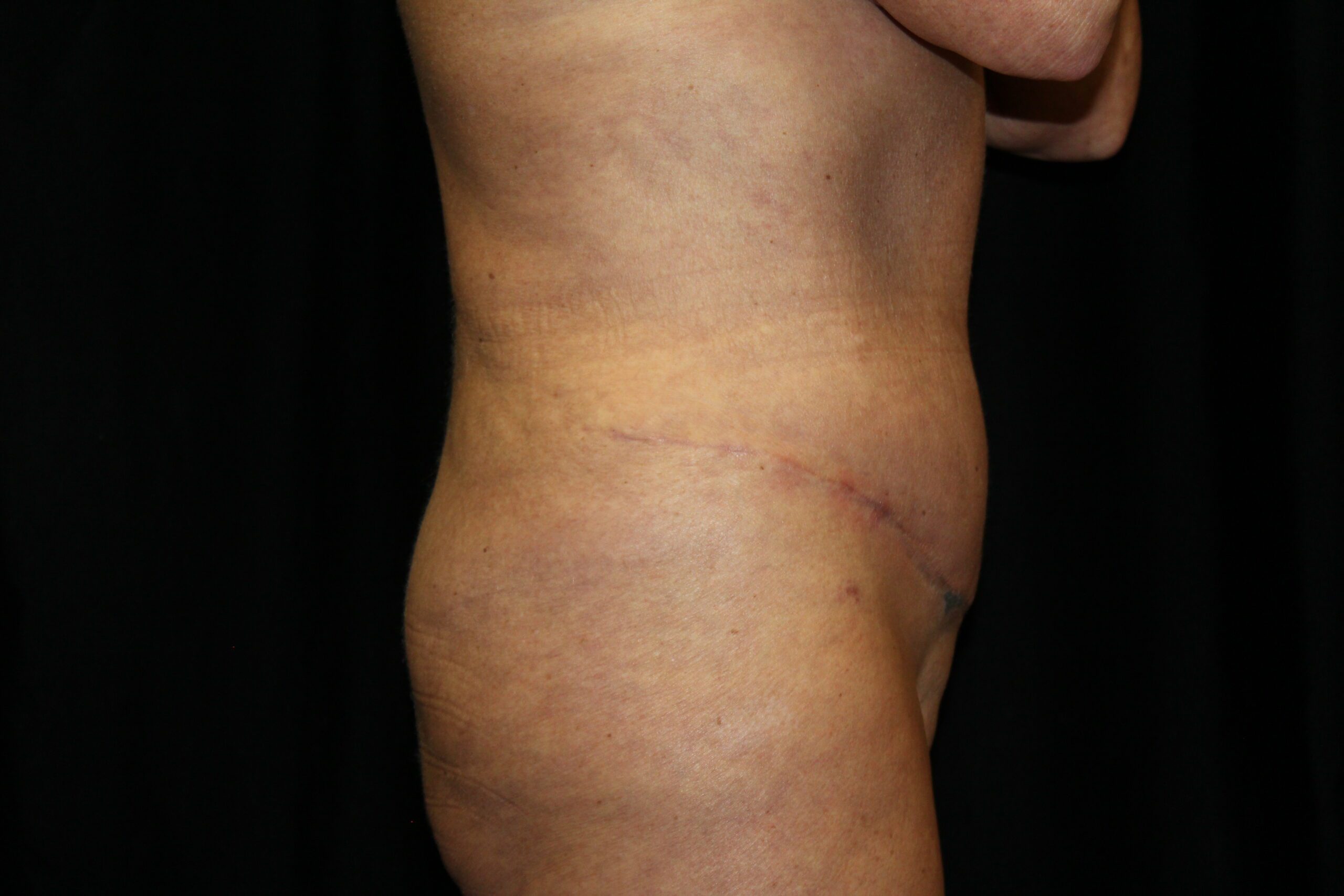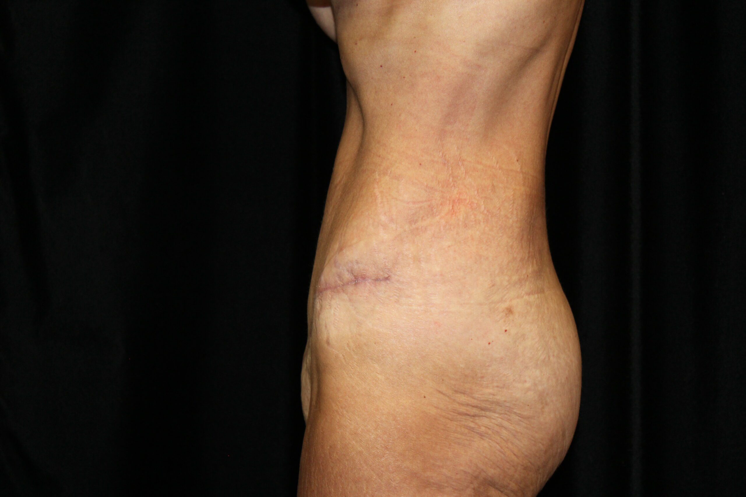 This is a 62 year old lady that had excessive skin and fat around the waist area. It gave her significant problems with wearing clothes. The mons pubis was sagging and causing irritation. She underwent a belt lipectomy. This procedure removes excessive fat and skin all the way around the waist area. It gives a better contour to the upper abdomen and the mons pubis was defatted and raised. She is now able to wear anything that she desires.