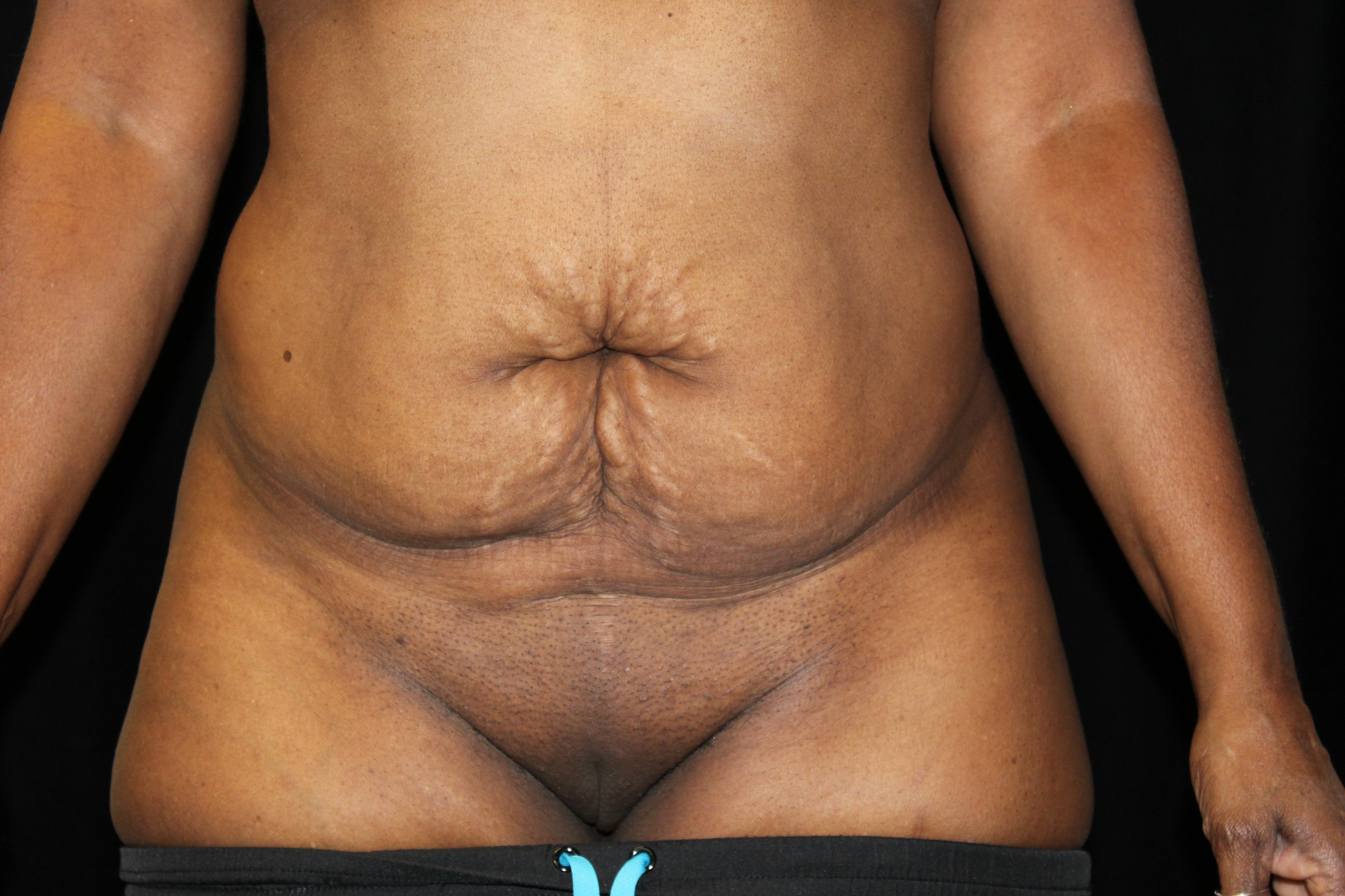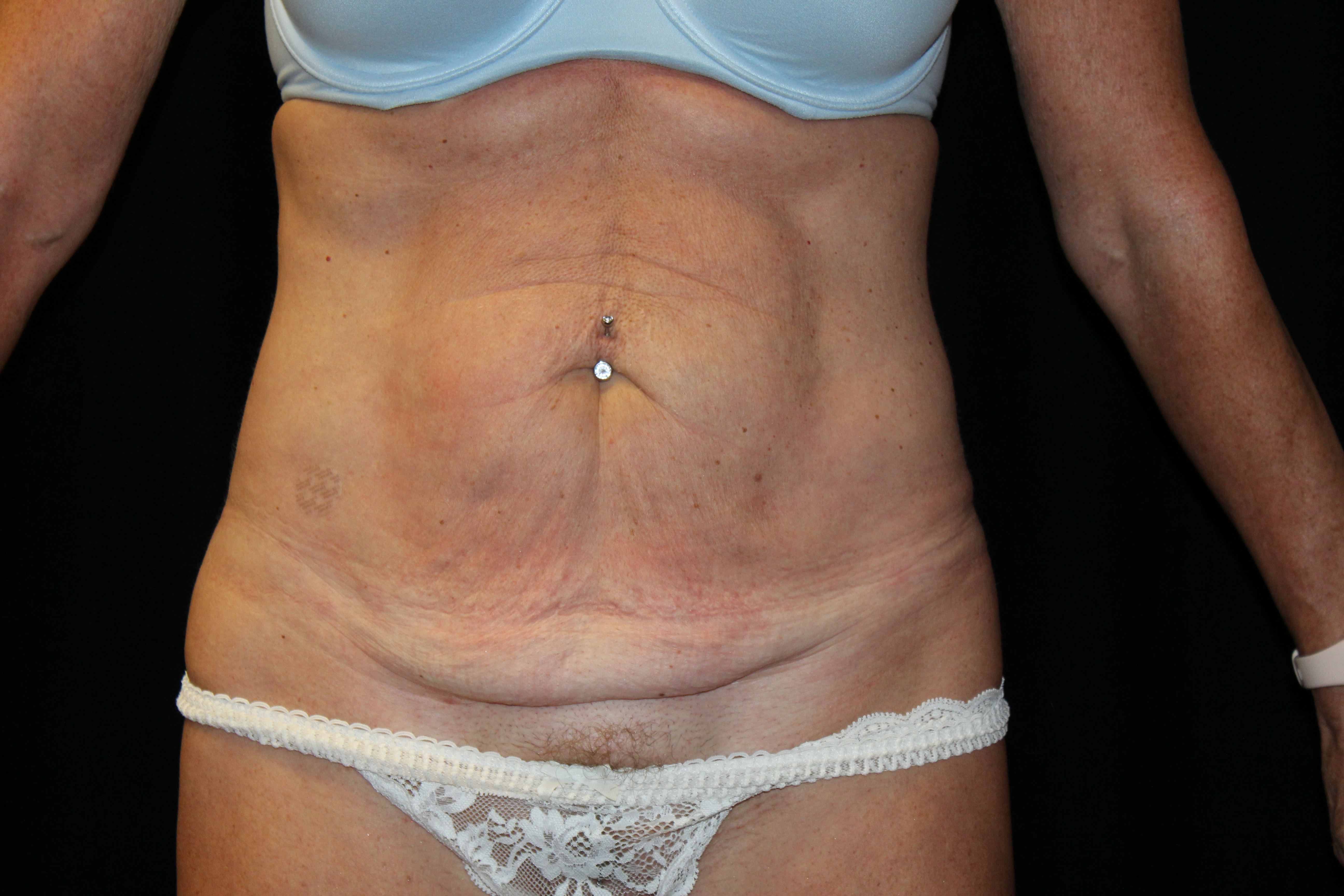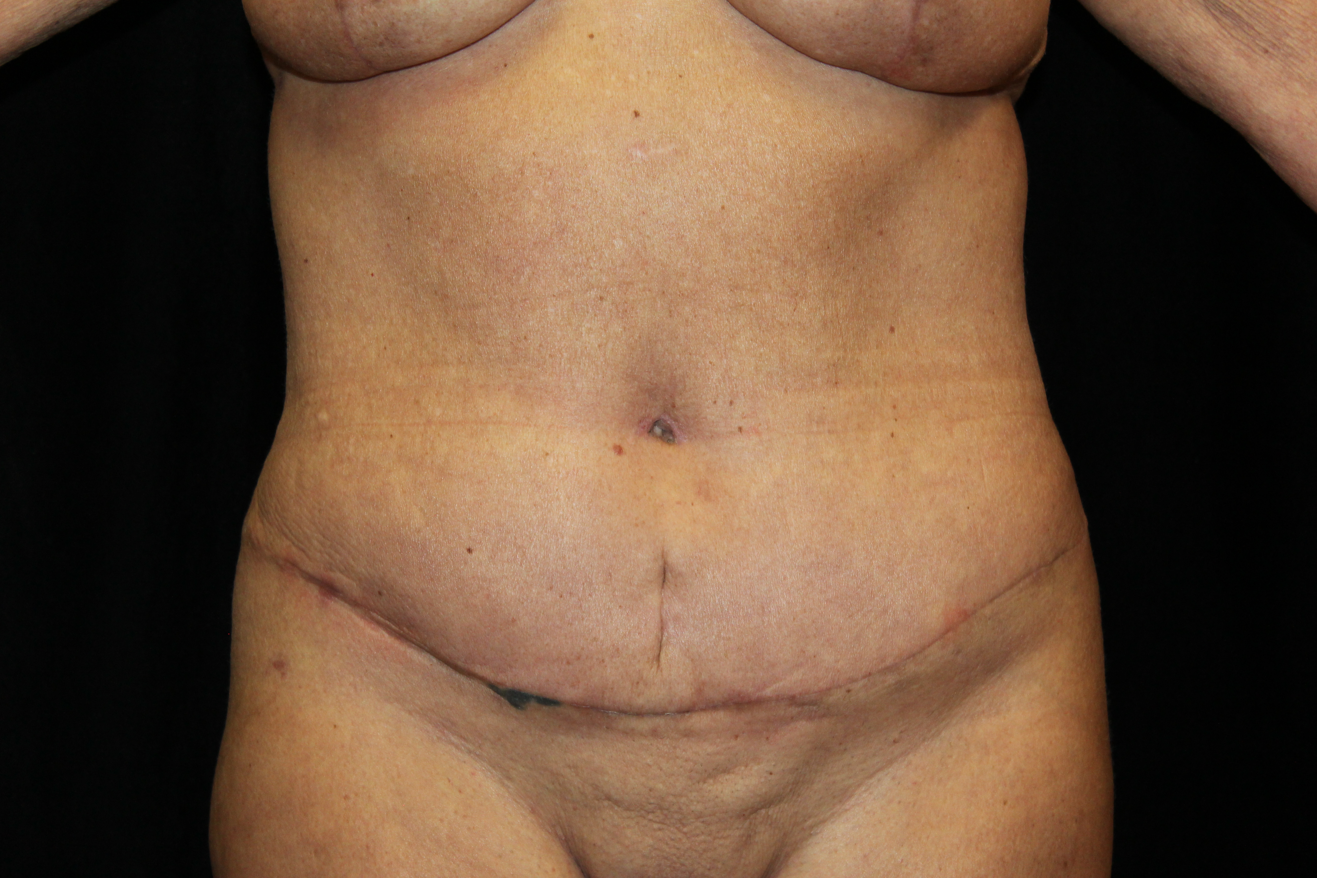 This is a 55YO lady that was having problems wearing her clothes because of the fullness in her abdomen. She had a protuberant abdomen with loose skin. She underwent an abdominoplasty. We removed the skin from the umbilicus down to the pubic area as well as tightened her muscles. She now has a flat abdomen. An abdominoplasty will give a long lasting result for around 10 to 20 years if they maintain their weight.