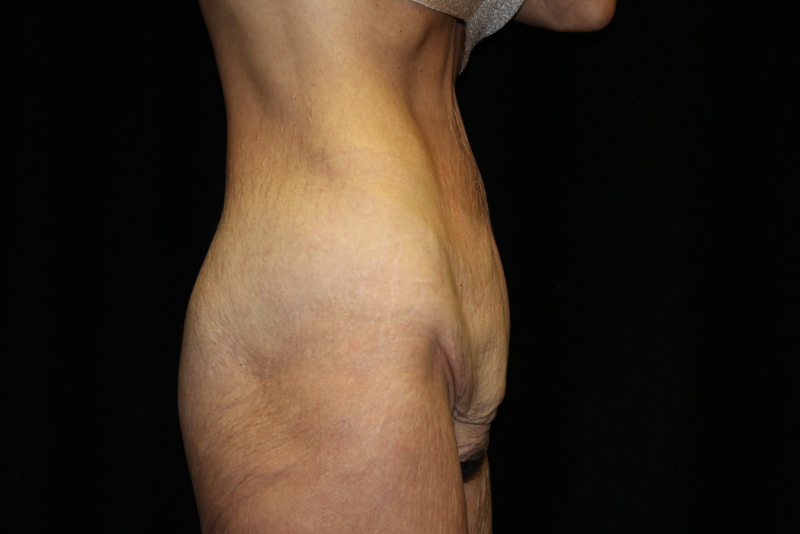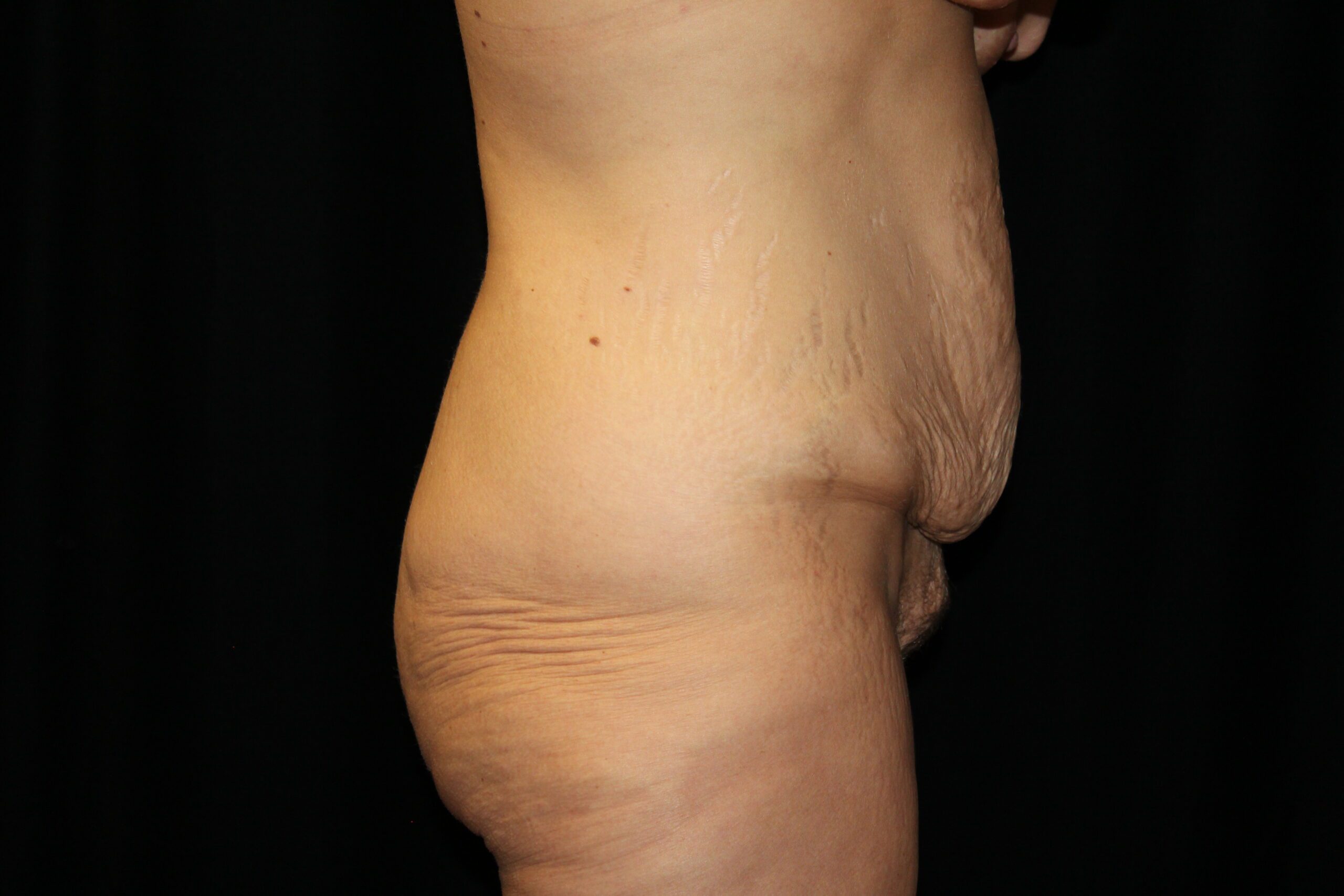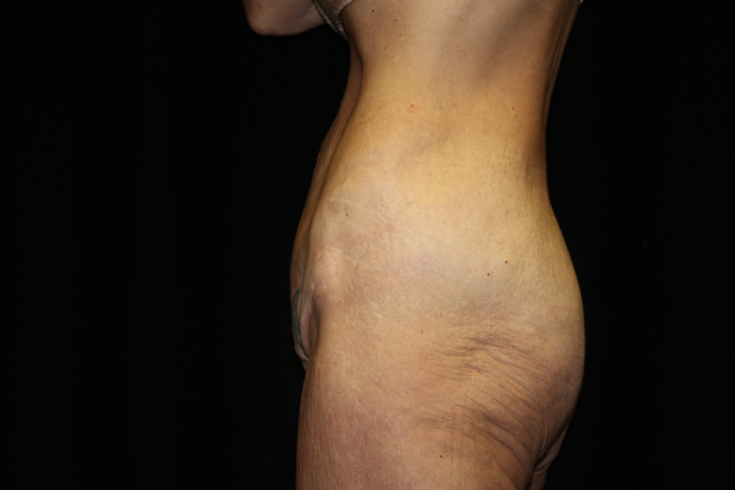This is a lady that had a large, hanging abdominal panniculus. She underwent a belt lipectomy to remove the hanging skin and fat. Also, after removing the panniculus she was able to get more active which helped her lose some more weight. As you can see she now has a good shape to her abdomen and body.
