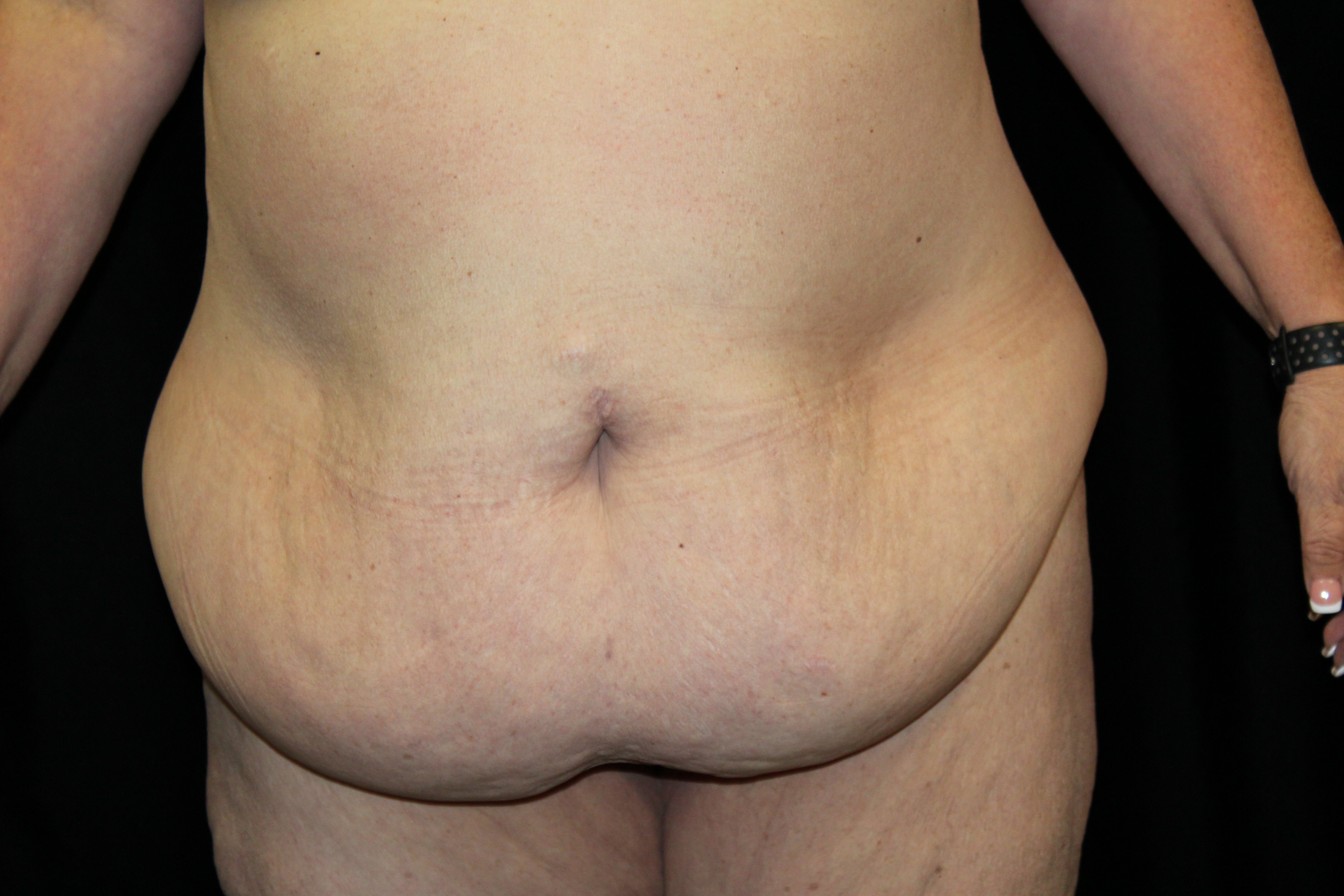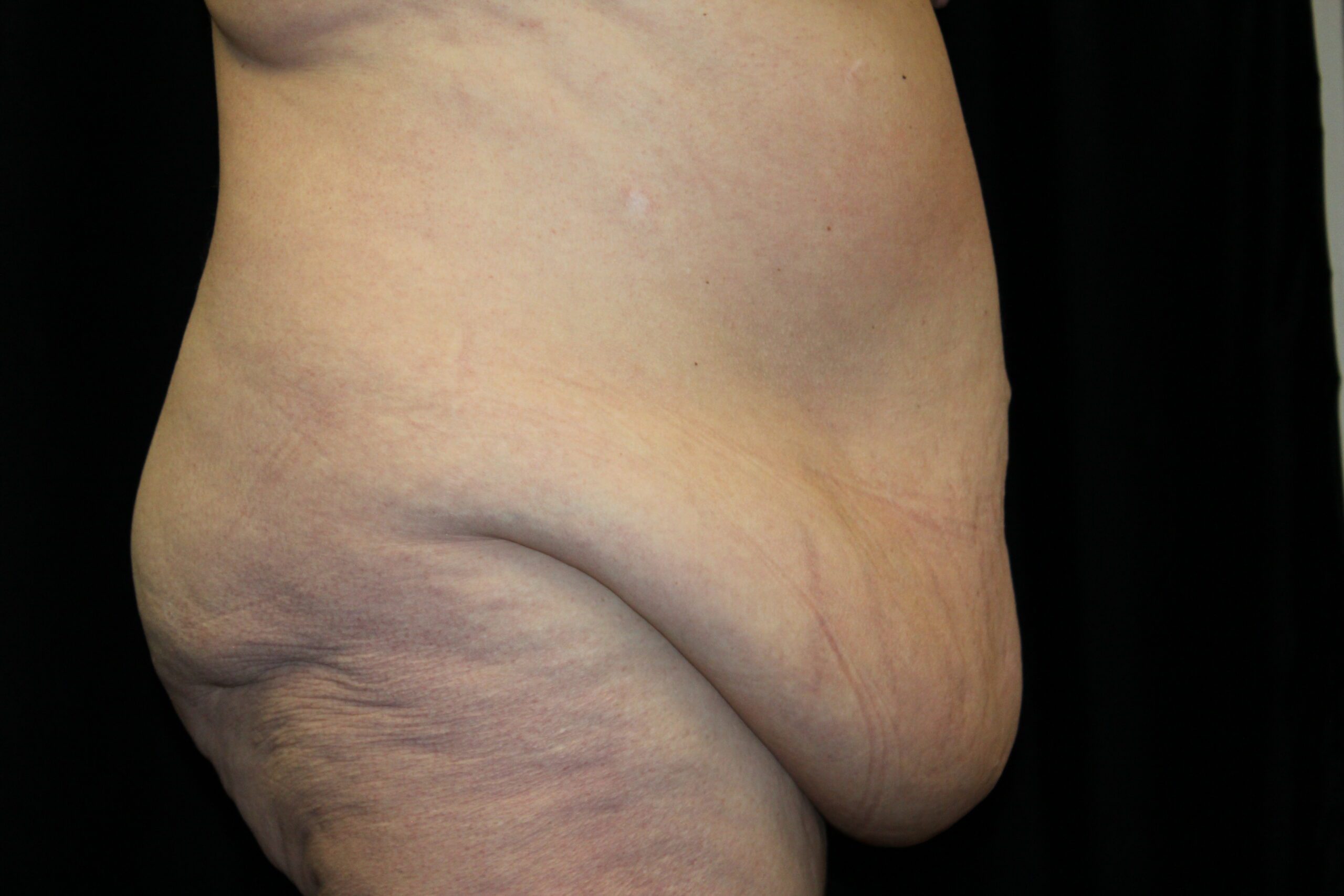 This is a lady that had a large, hanging abdominal panniculus. She got infections and irritation underneath this flap of skin and in the groin area chronically. Also she noticed that she had a malodorous smell that was coming from these areas. She underwent a belt lipectomy. As you can see preoperatively, she has a lot of excessive skin the abdomen and flank area. This was all removed with the belt lipectomy. This procedure is done as an overnight admission at the hospital.