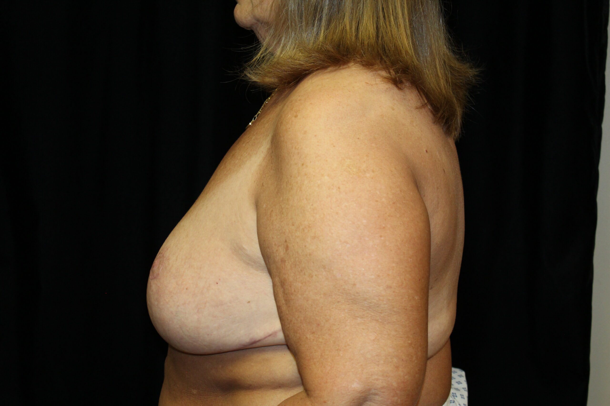 This is a lady whose breasts were a little larger than she desired. She also started getting some droopiness of the breasts. She desired to go down some in size and also have the breasts uplifted. She underwent a small breast reduction. As you can see preoperatively, her breasts are large and ptotic especially on the right side. Now we have her more symmetrical and her breasts are in good position. This makes her look much more youthful and has helped her neck and shoulder pains.