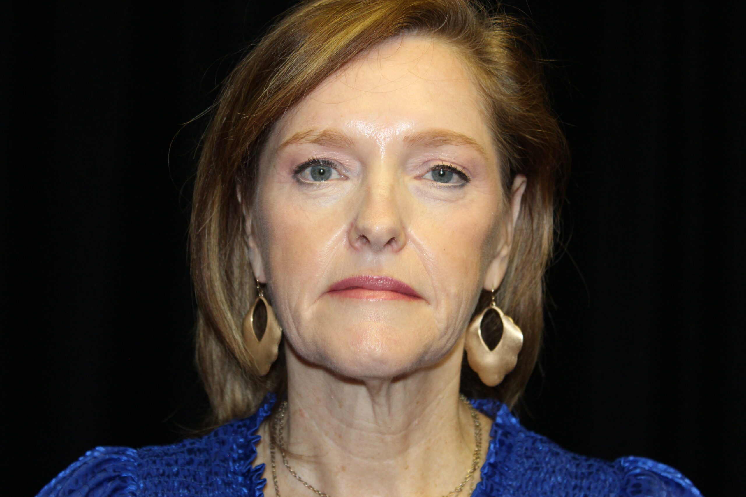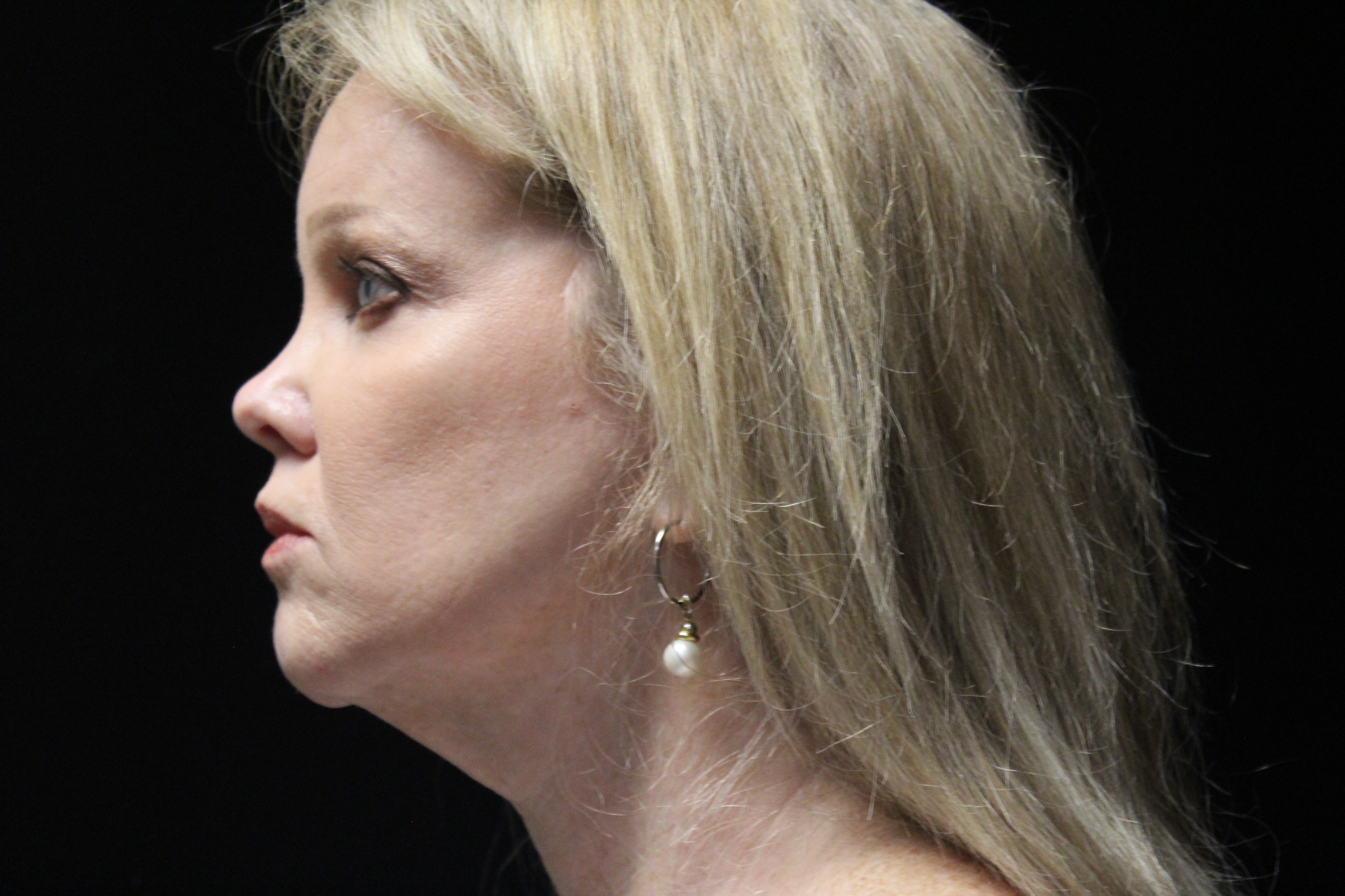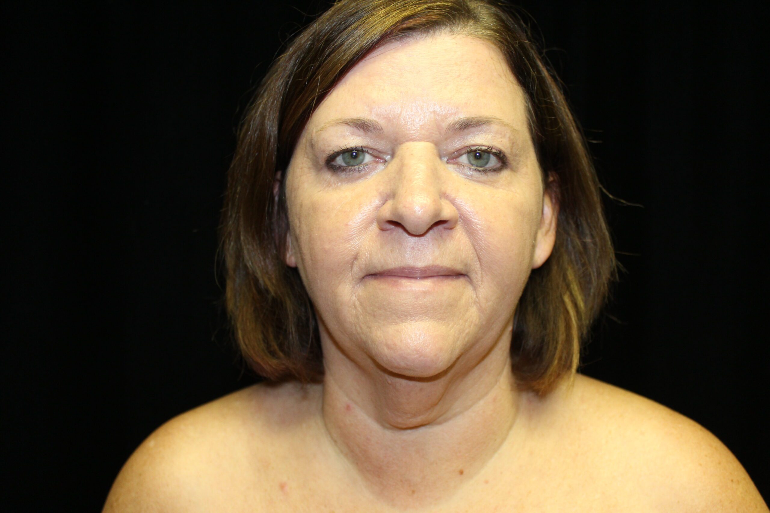 This is a 55 year old lady that desires some cosmetic improvement in her face and neck. When I examine her, she has a good bit of extra fat in the neck. She is jowling significantly and has generalized looseness in the face. This has given her face a puffy appearance. She has totally lost definition of her mandibular border and neck. She underwent a facial rejuvenation procedure. As you can see we have removed fat from the neck and she now has a sharp mandibular border. We have lifted her jowls and done multiple fat graftings in her face. She now looks much more vibrant and feels much better about herself. This is a procedure we do in the office with IV sedation.