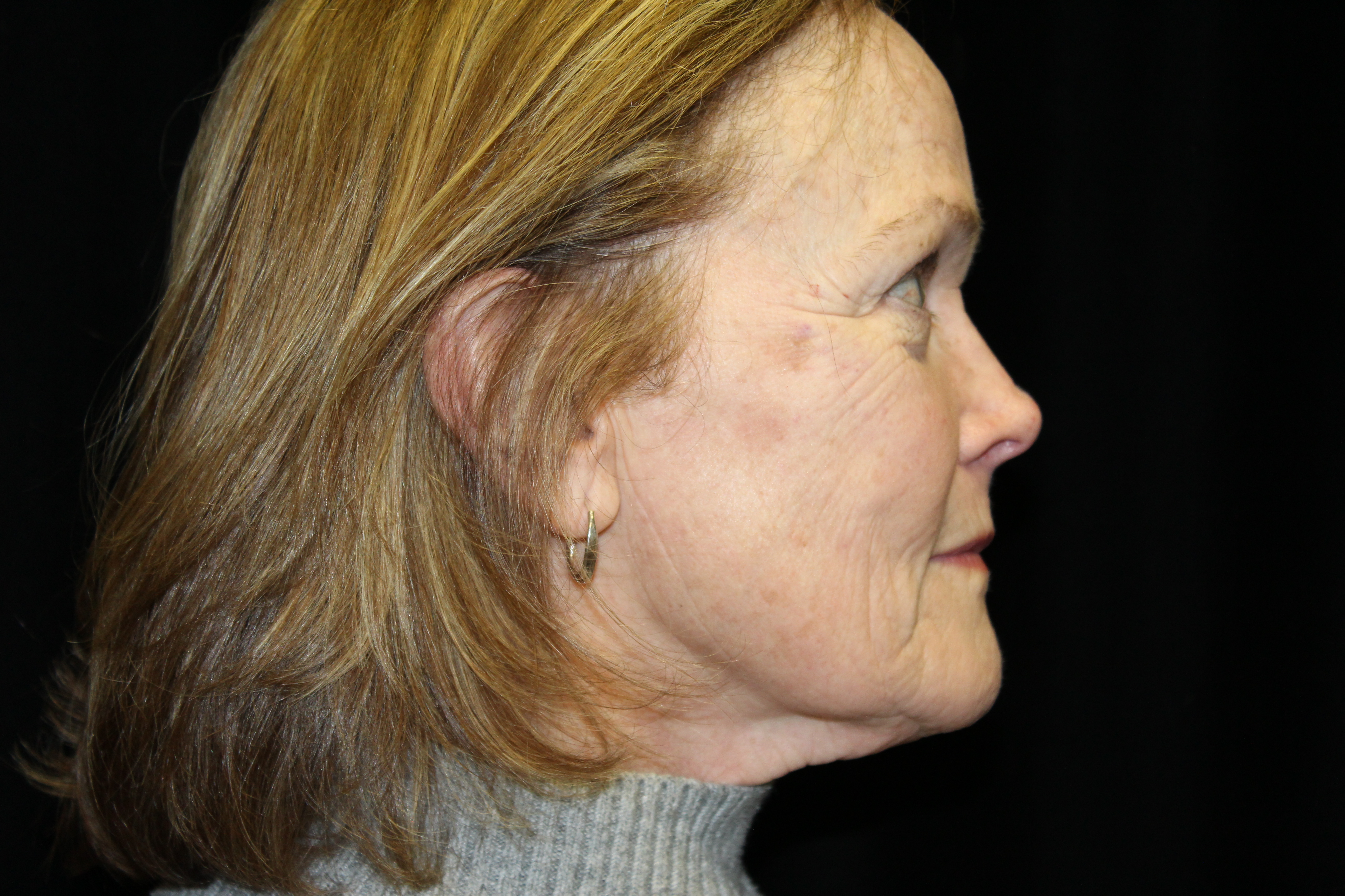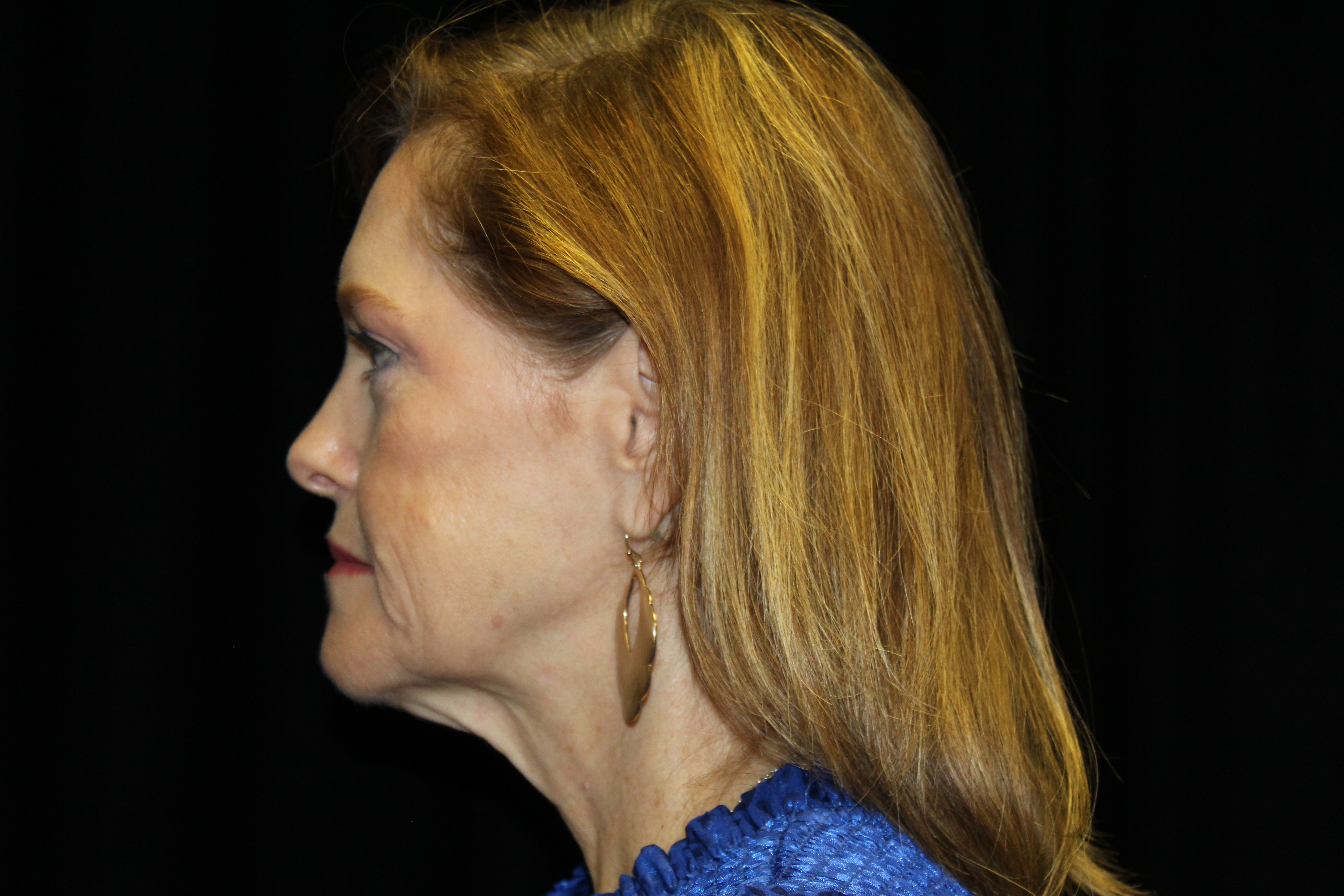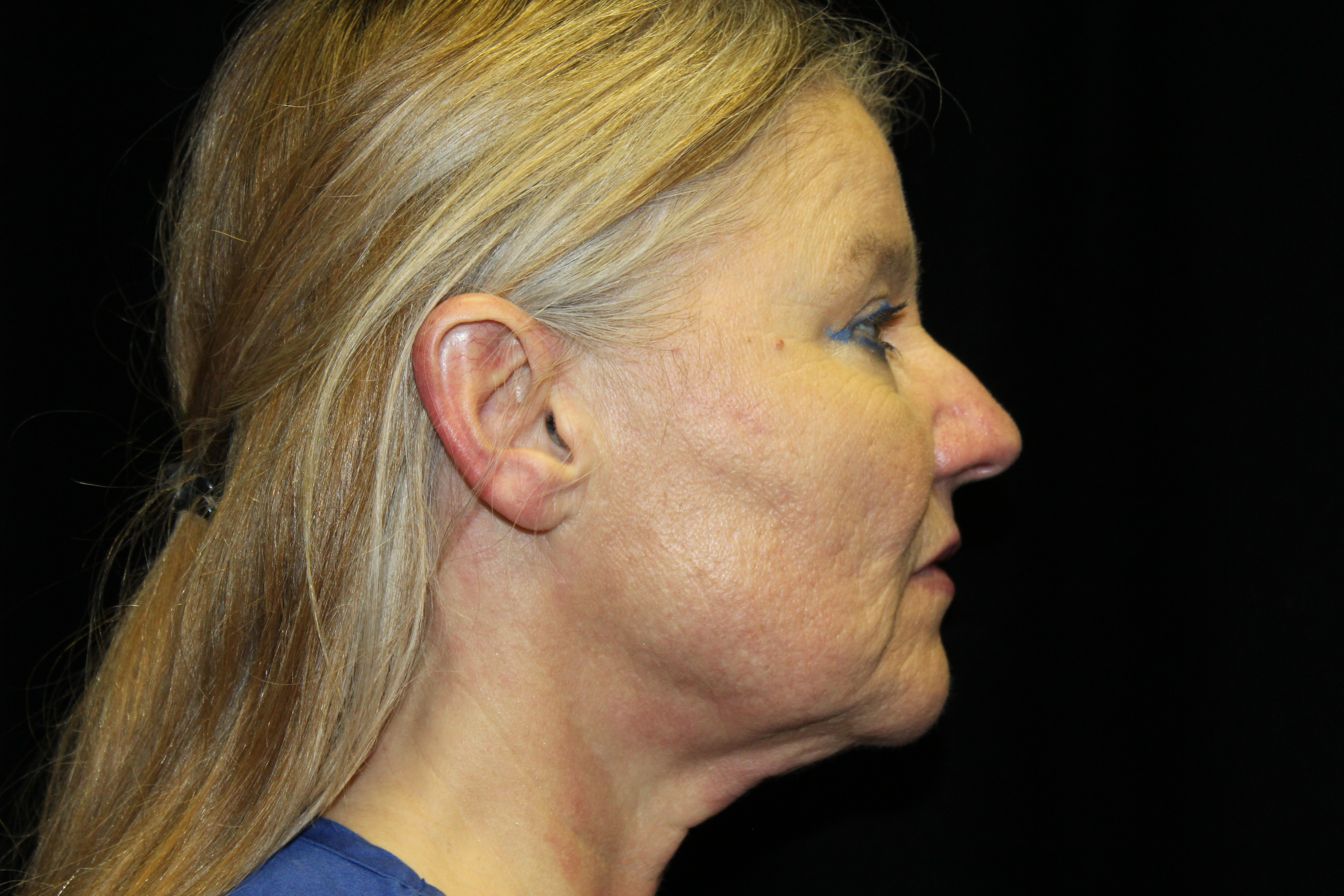 This is a 65YO lady that desired some cosmetic improvement of her face and neck. She was getting looseness in the face and neck area with prominent jowling. She also had a turkey gobbler in her neck. She underwent face and neck rejuvenation. I did some fat grafting to help fill in where she had lost fat in her face. We added fat to her buccal area and also the areas just in front of her jowl area. This helped smooth out the face and the jaw line. This procedure is done in the office.