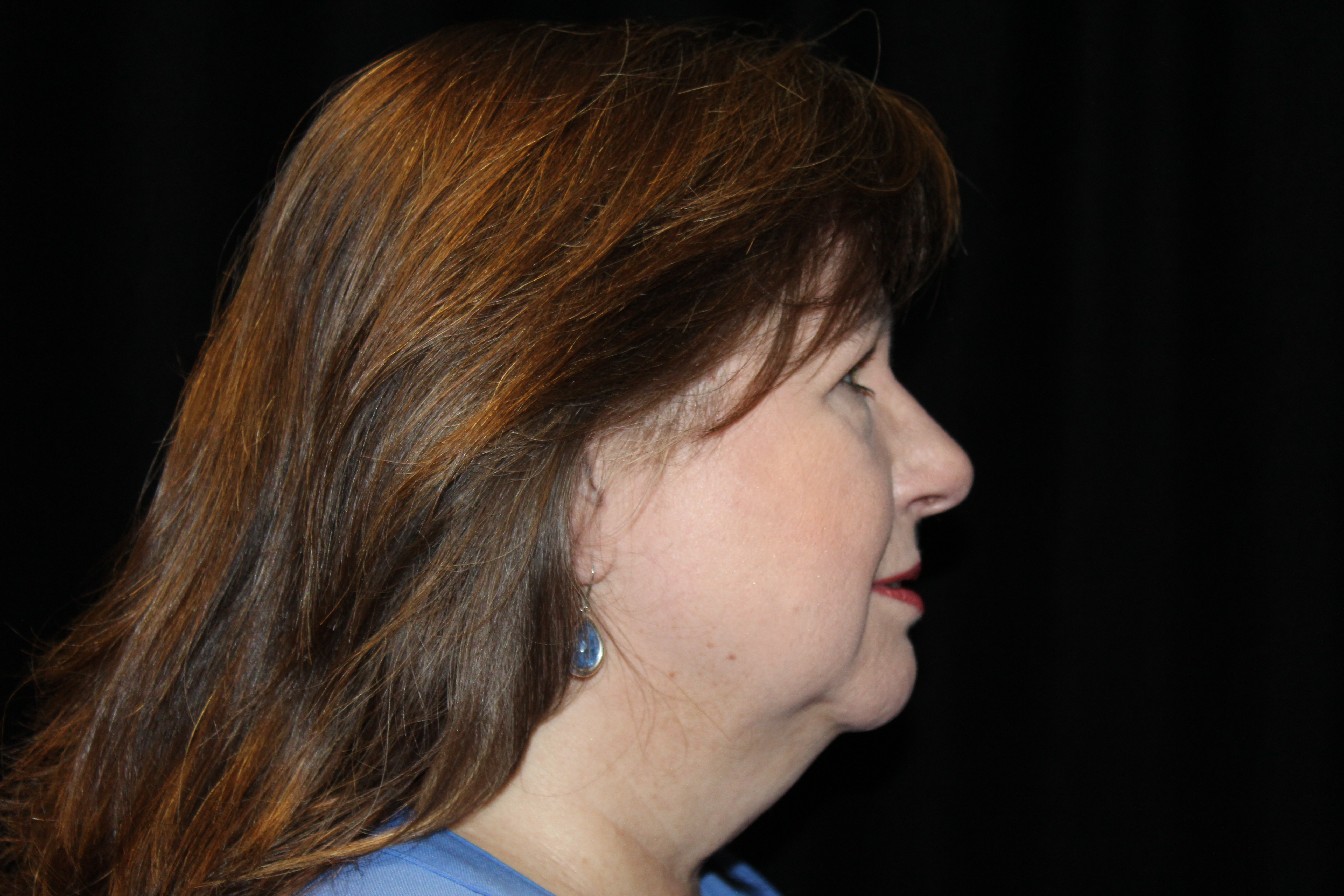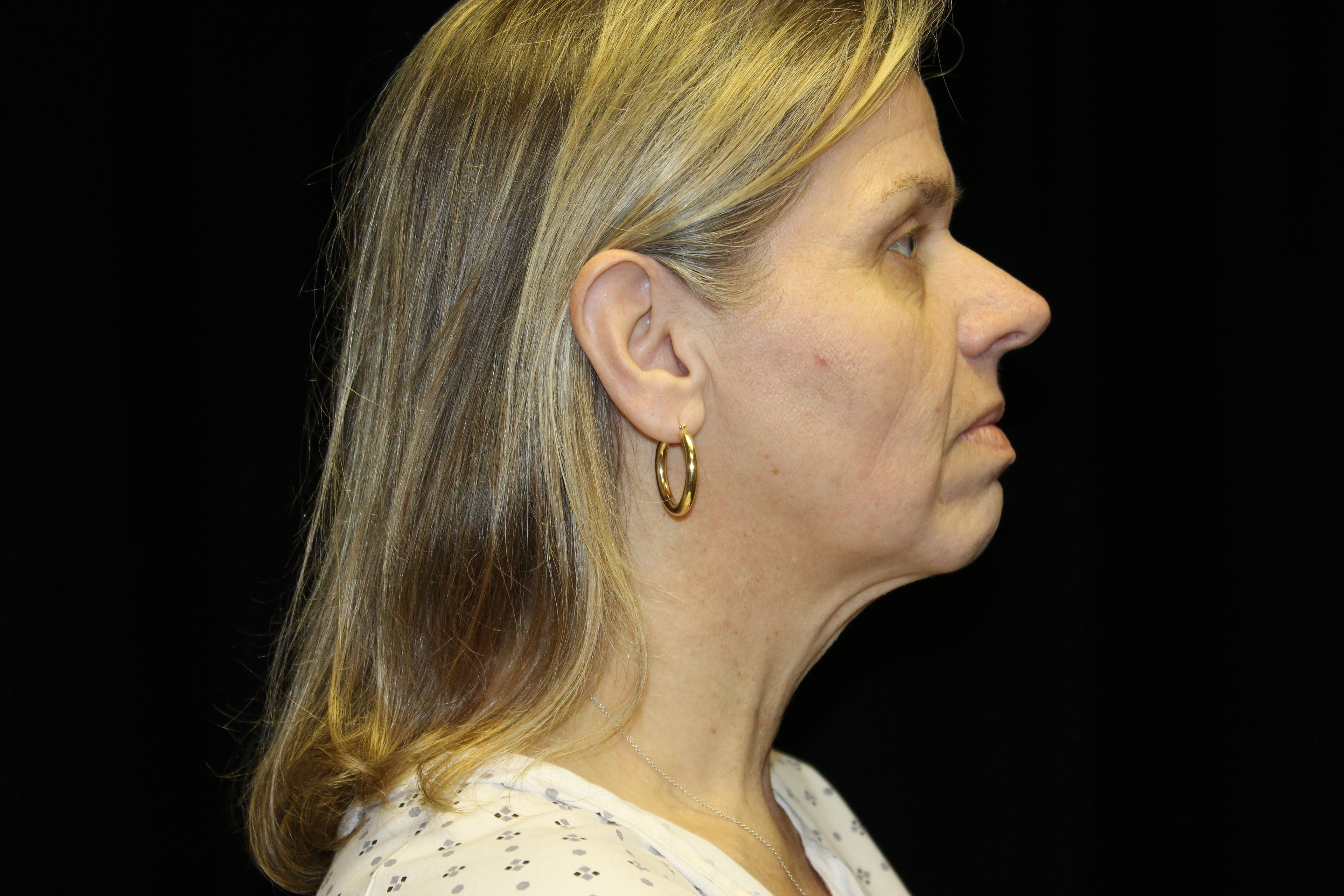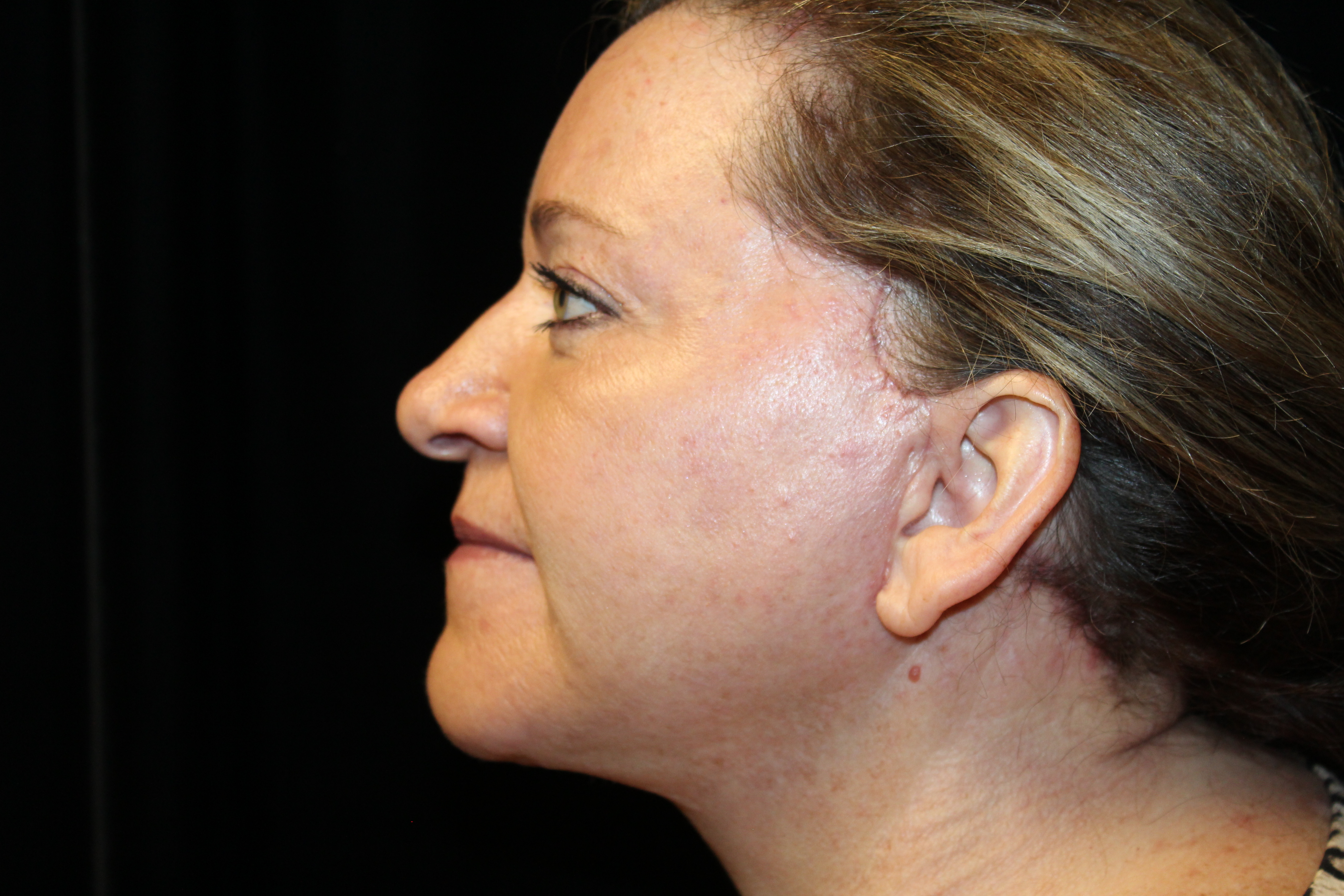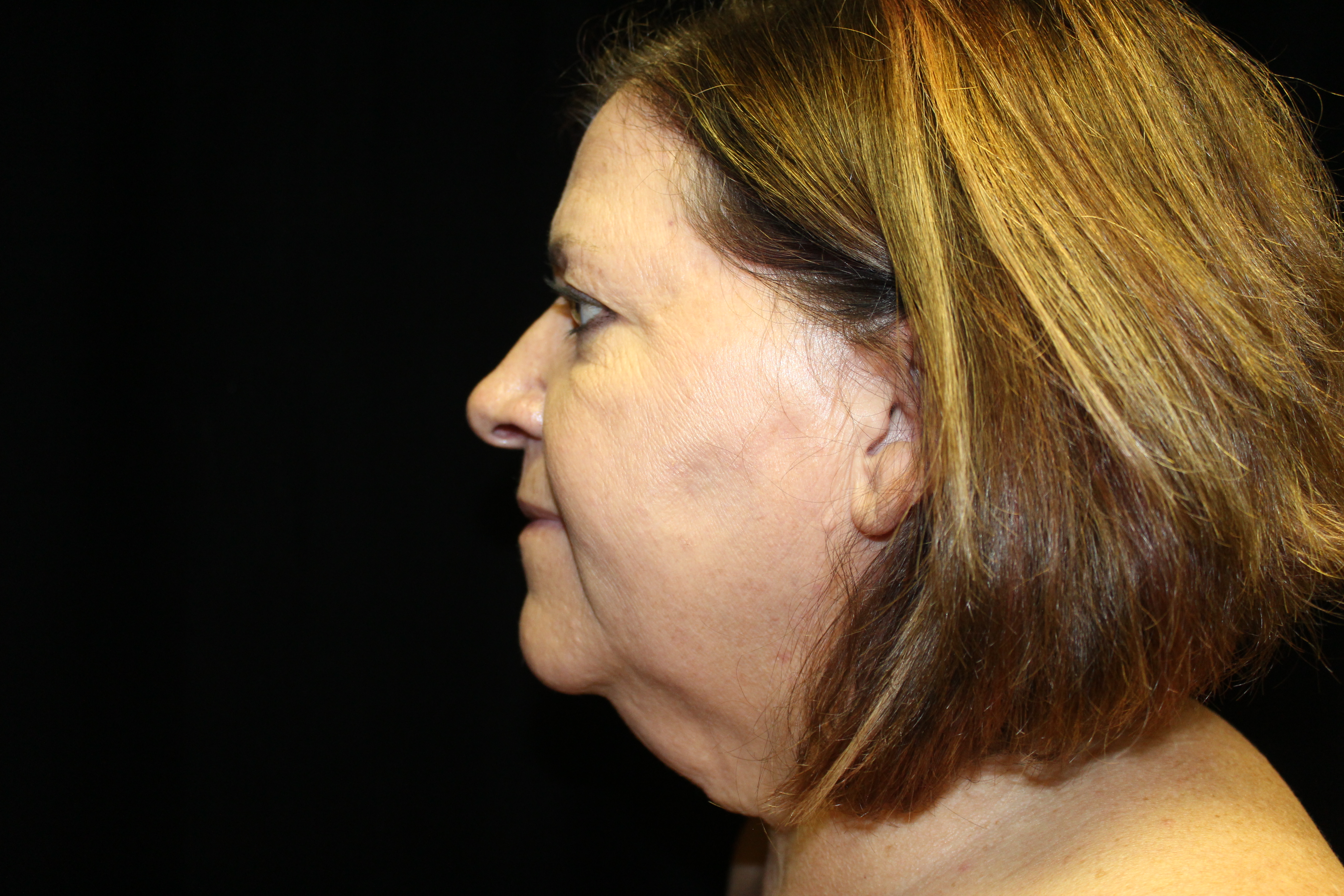This is a 50YO lady that is starting to get some generalized looseness of her face and neck. She has lost the border of her mandible and had an obtuse angle to her neck. Ideally we like to have close to a right angle in the neck going up to the chin area.