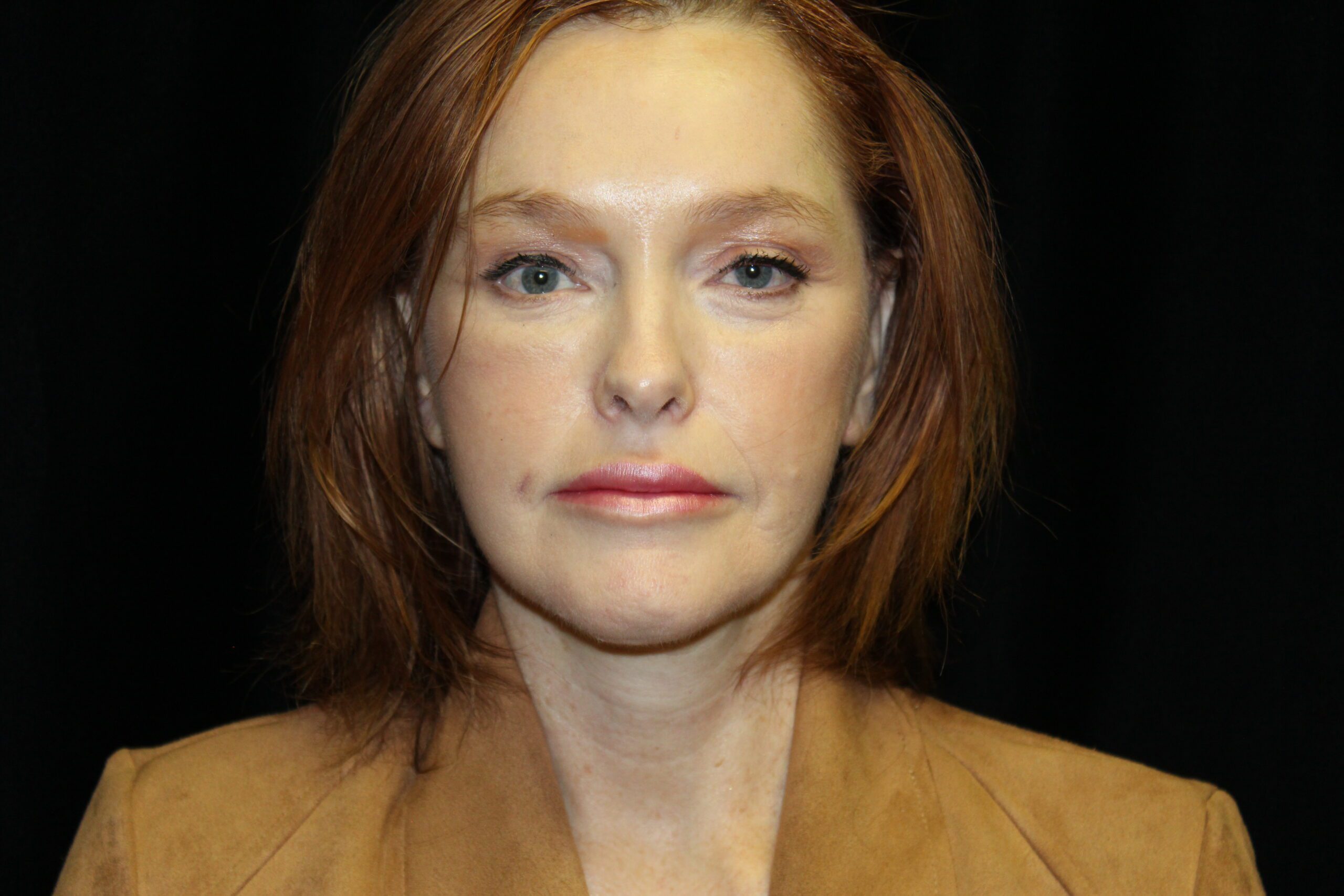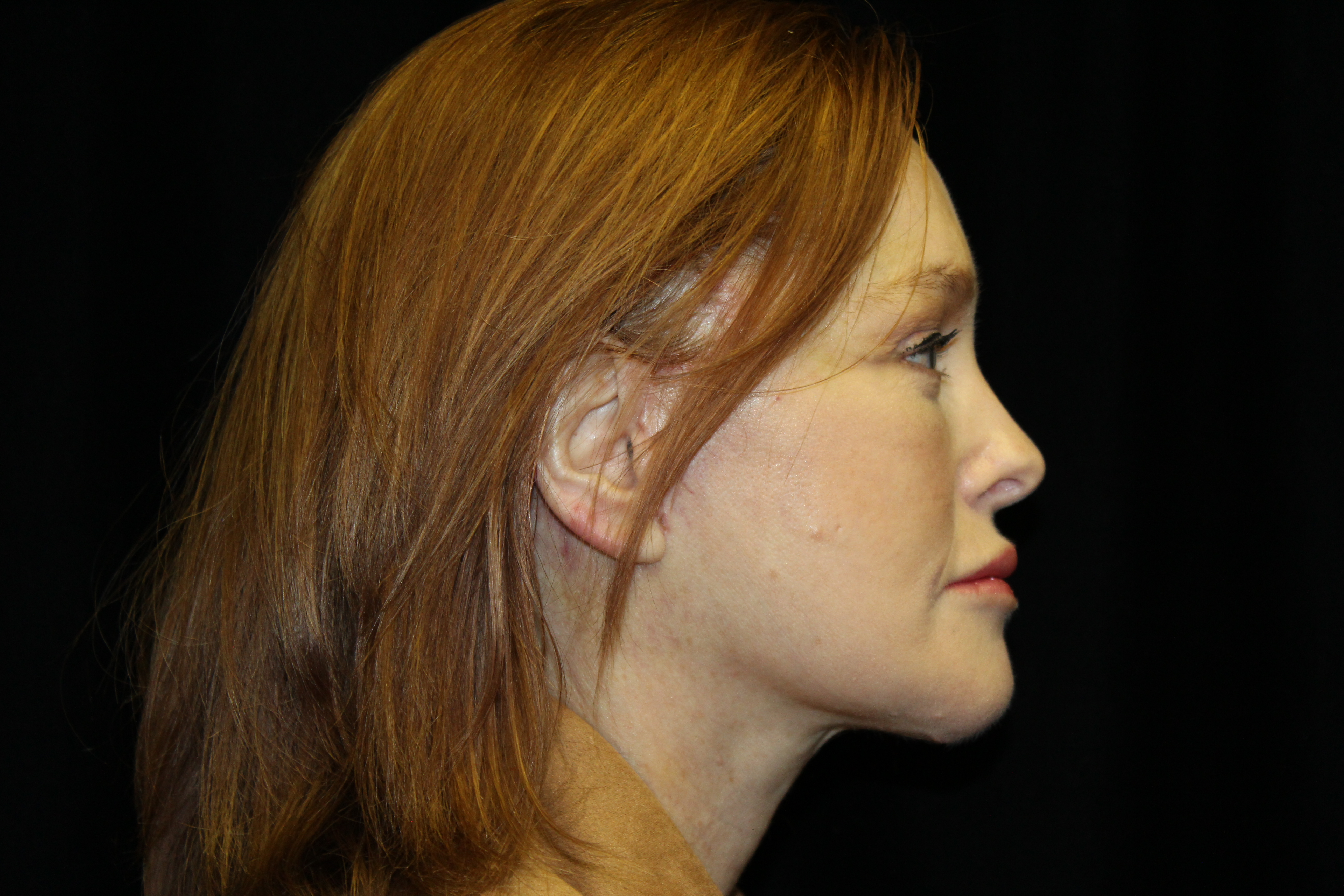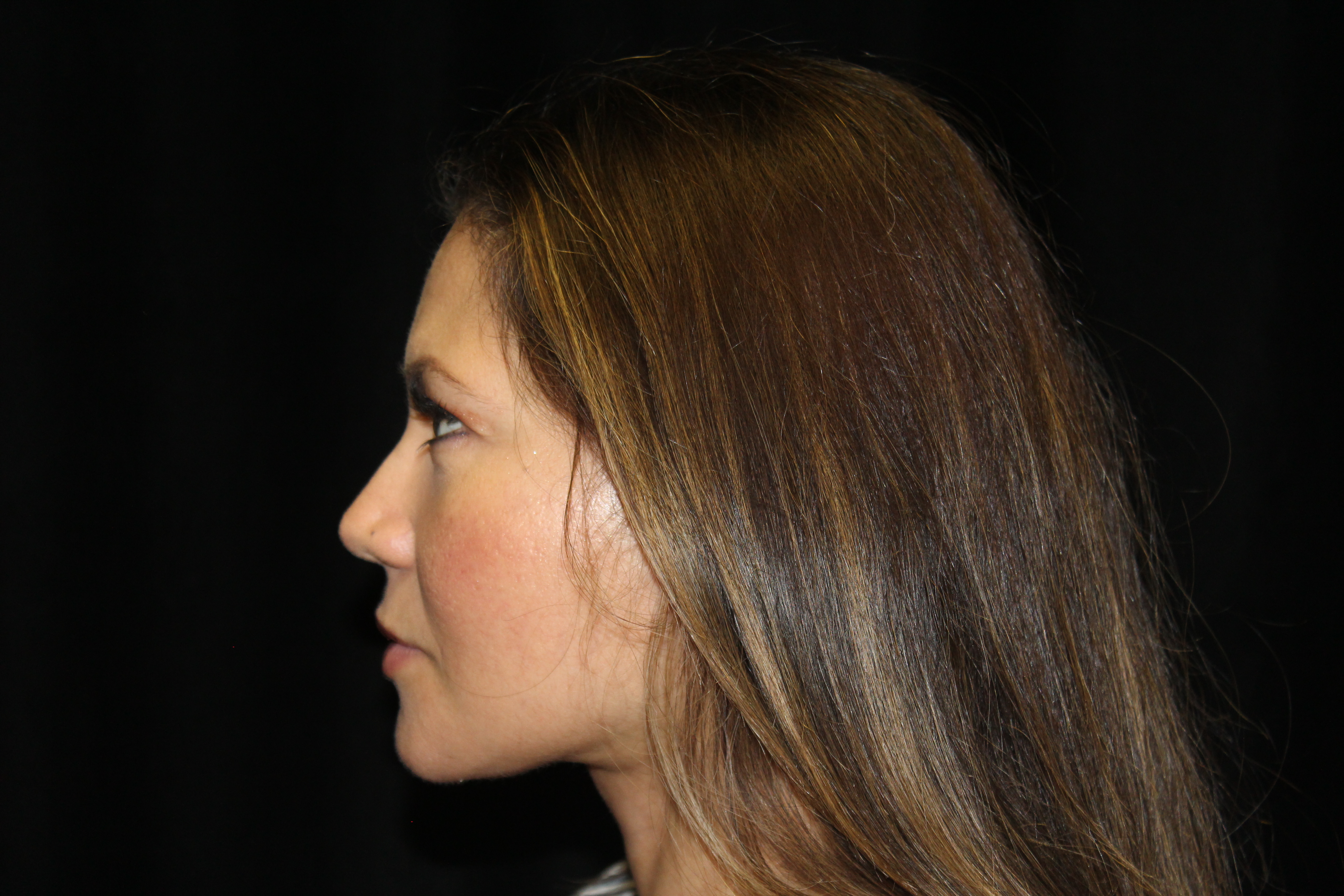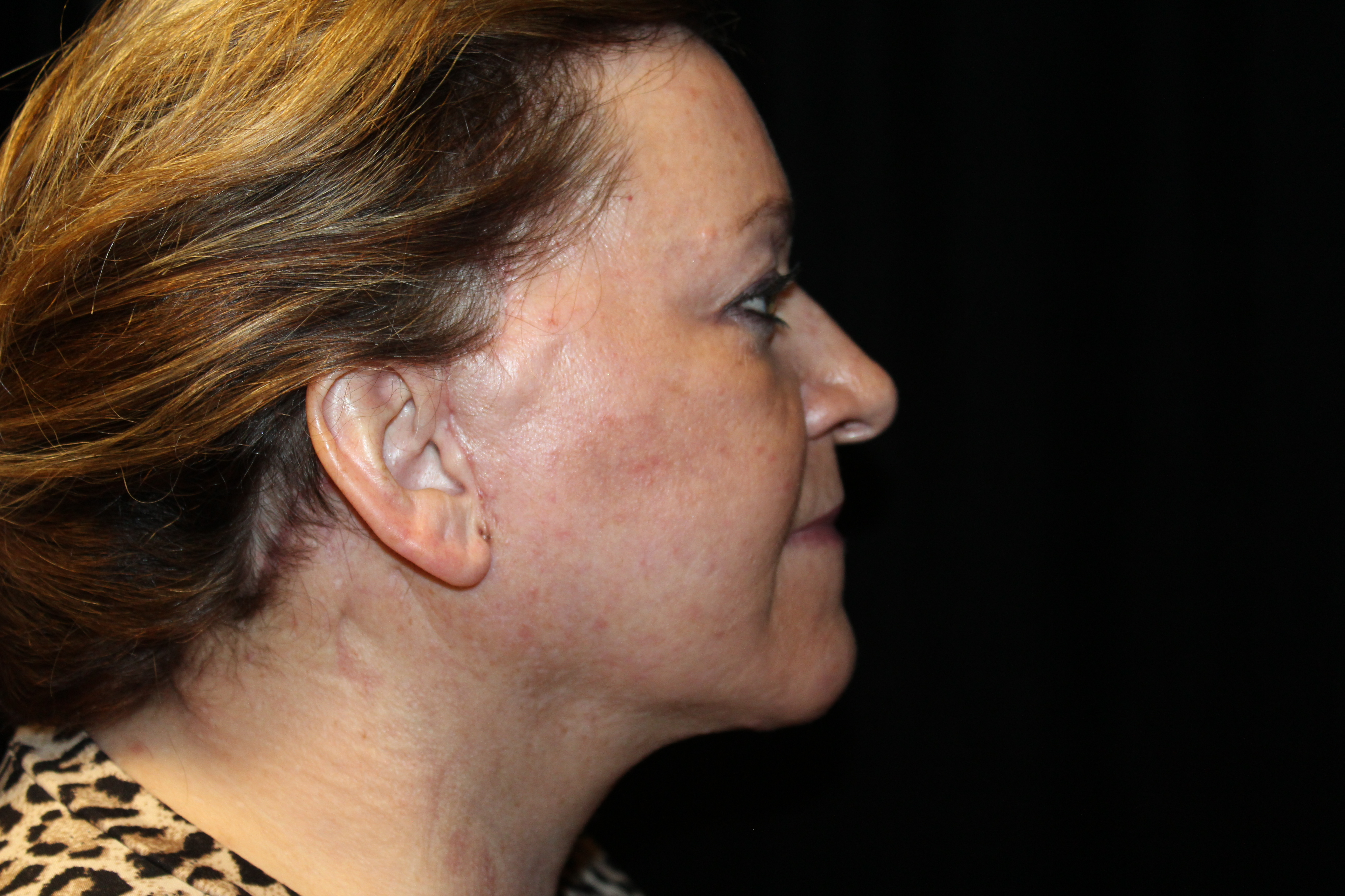 This is a 50YO lady that is starting to get some generalized looseness of her face and neck. She has lost the border of her mandible and had an obtuse angle to her neck. Ideally we like to have close to a right angle in the neck going up to the chin area.