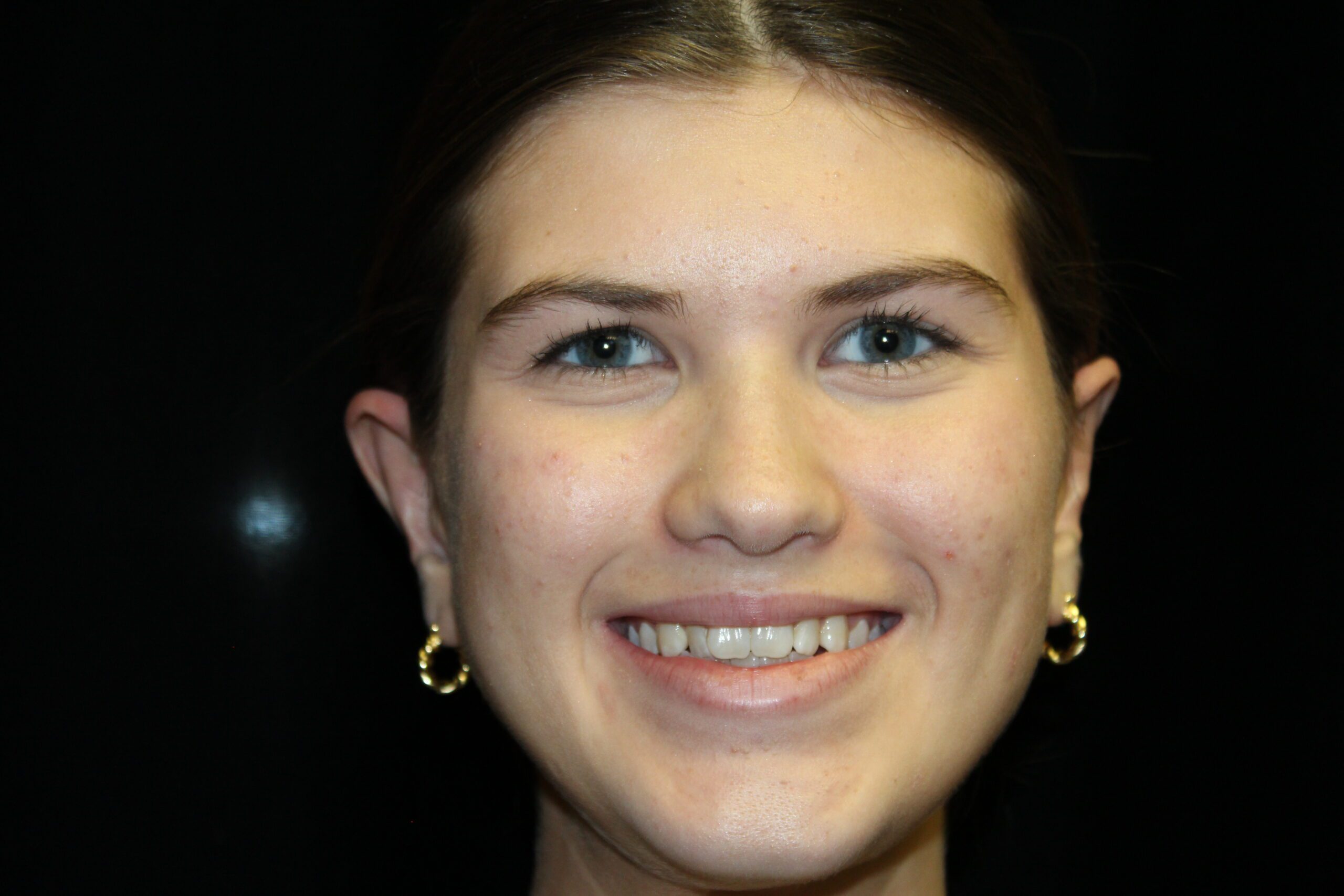 This is a young lady that has a very crooked nose with a small dorsal hump and fullness just above the lip area of the nose. This area is called a columella. It tends to hang and be prominent in that area. She underwent a rhinoplasty. As you see, the nose is much straighter and now has a gentle slope. We have gotten the fullness out of the lower part of the nose which is just above the lip.
