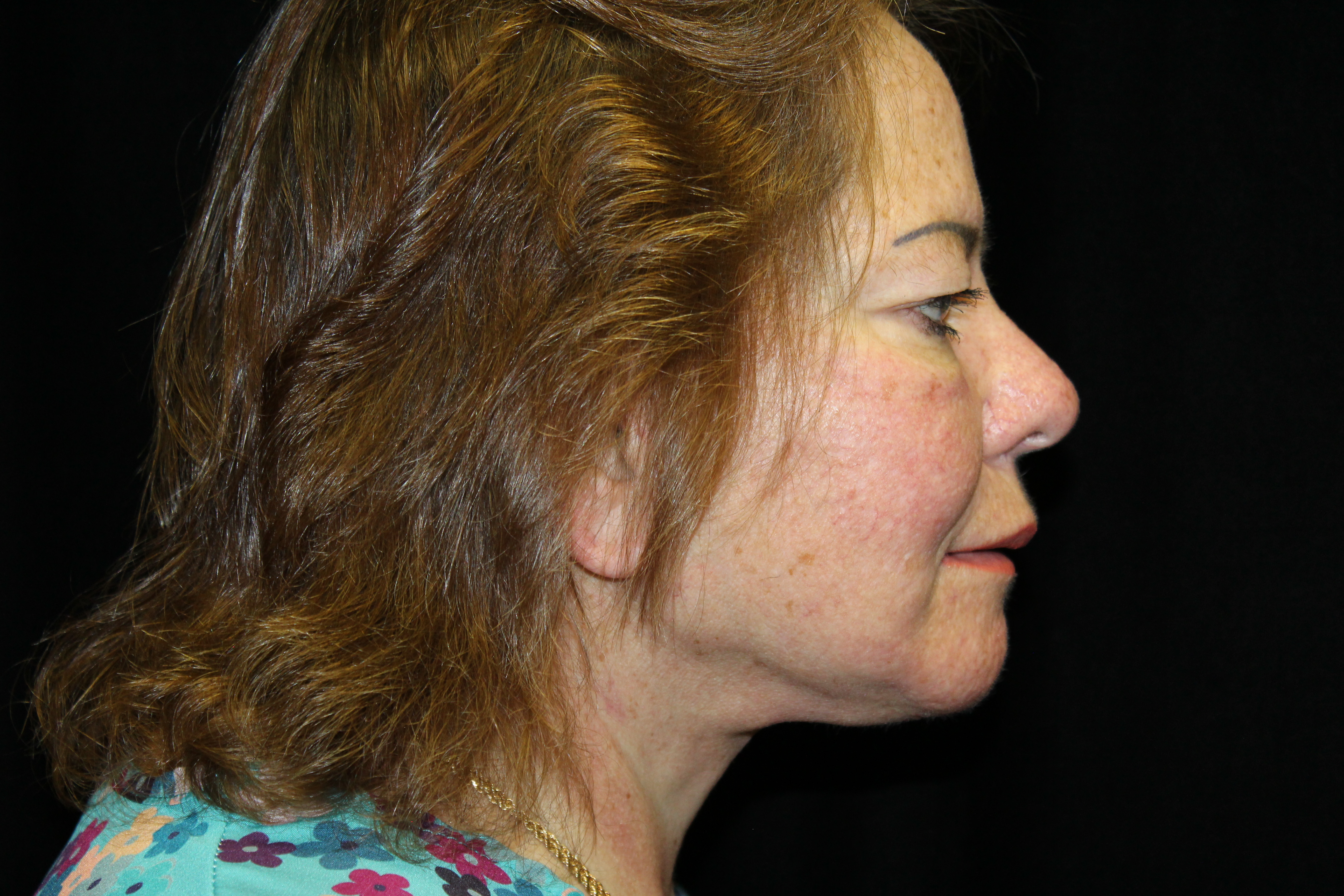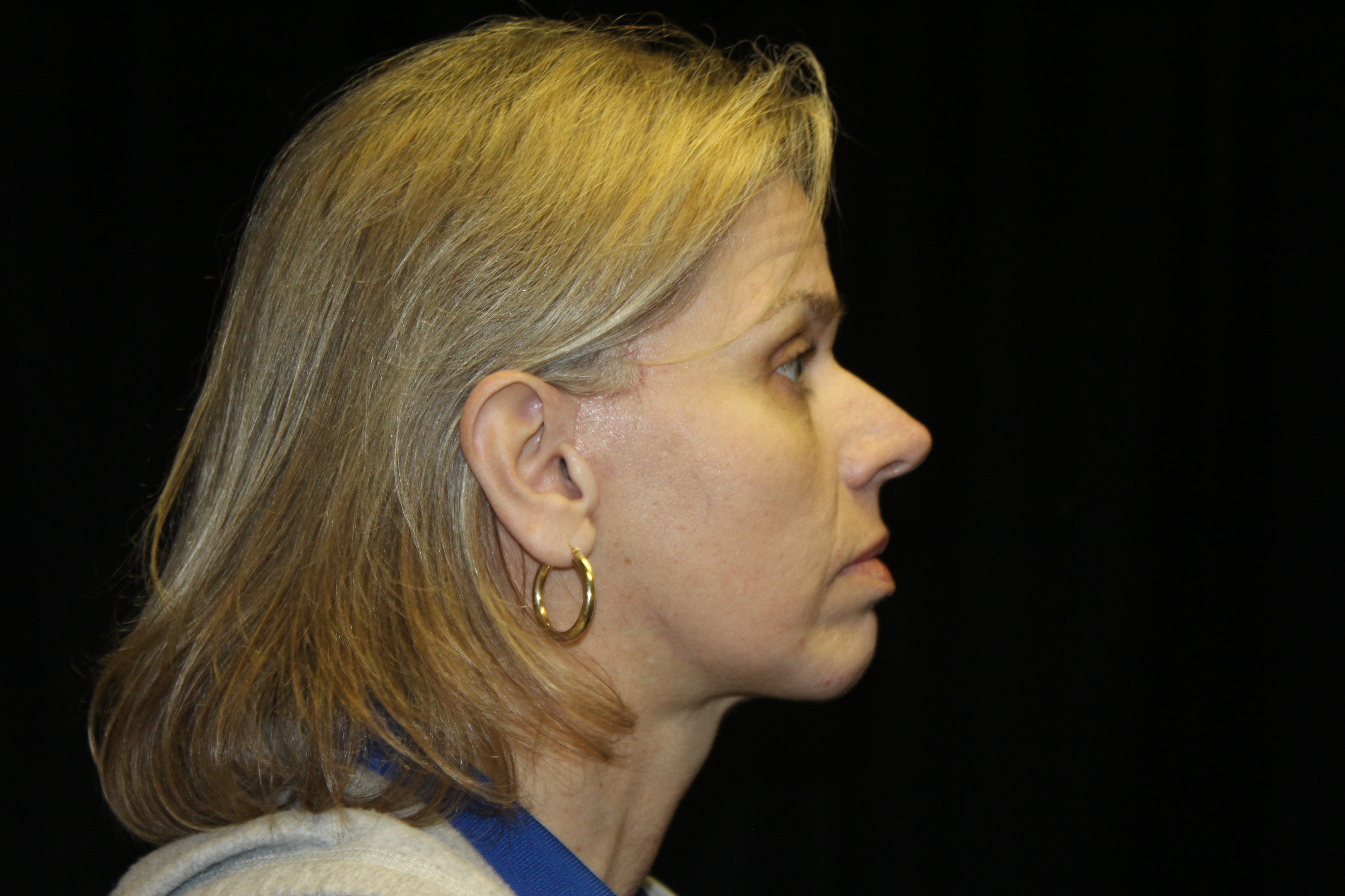 This is a lady that is in her 50’s. She started getting a lot of looseness in her face, especially in the jowl and neck area. Also she developed a lot of excessive fat in the jowl area. She had face and neck rejuvenation. As you can see she was indented in front of the jowls. This area as well as the chin was fat grafted to help fill this in. The indentions around the chin were released and excessive fat in the neck was removed. The neck was also tightened. This procedure is usually done in the office through IV sedation.