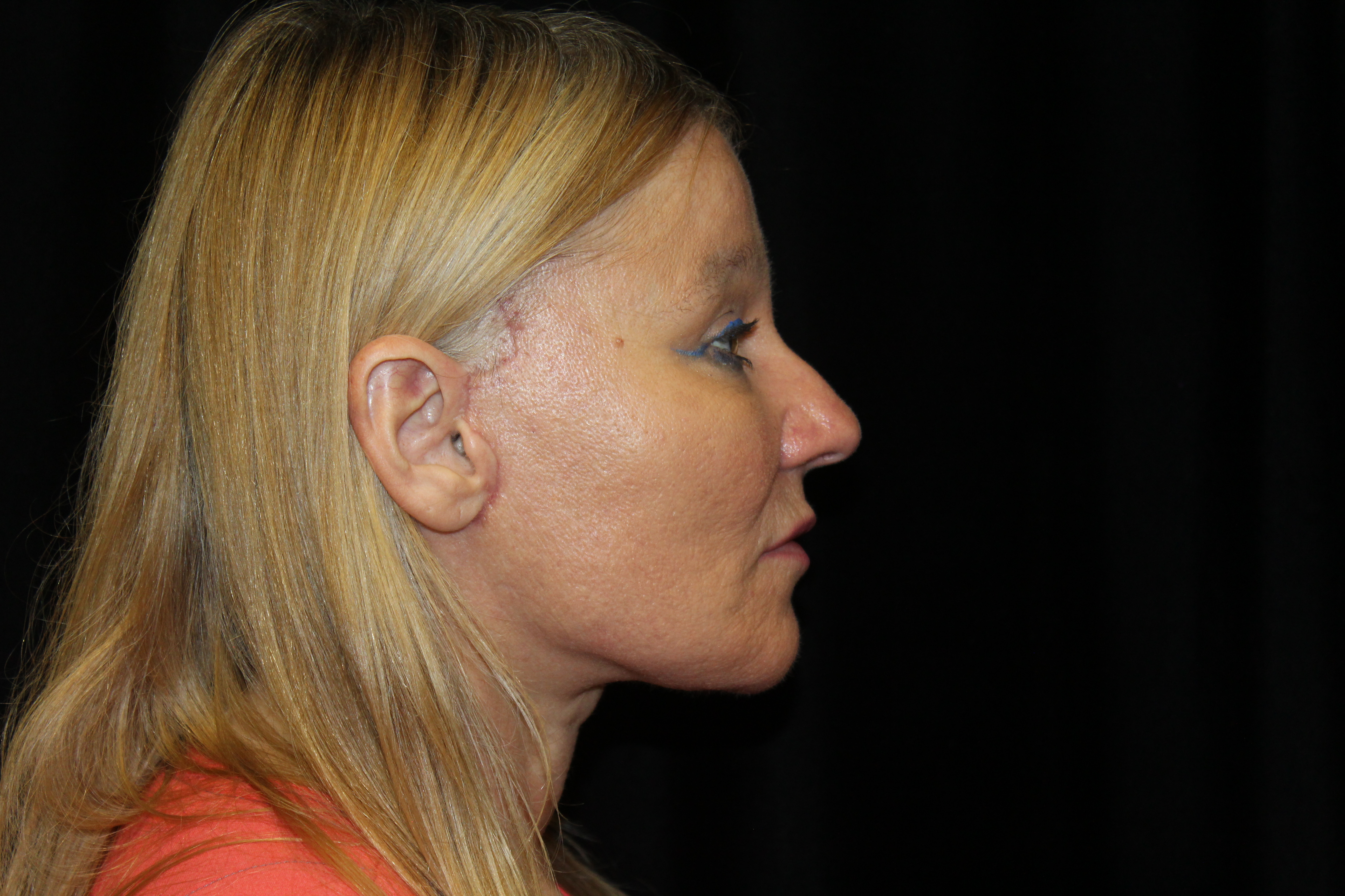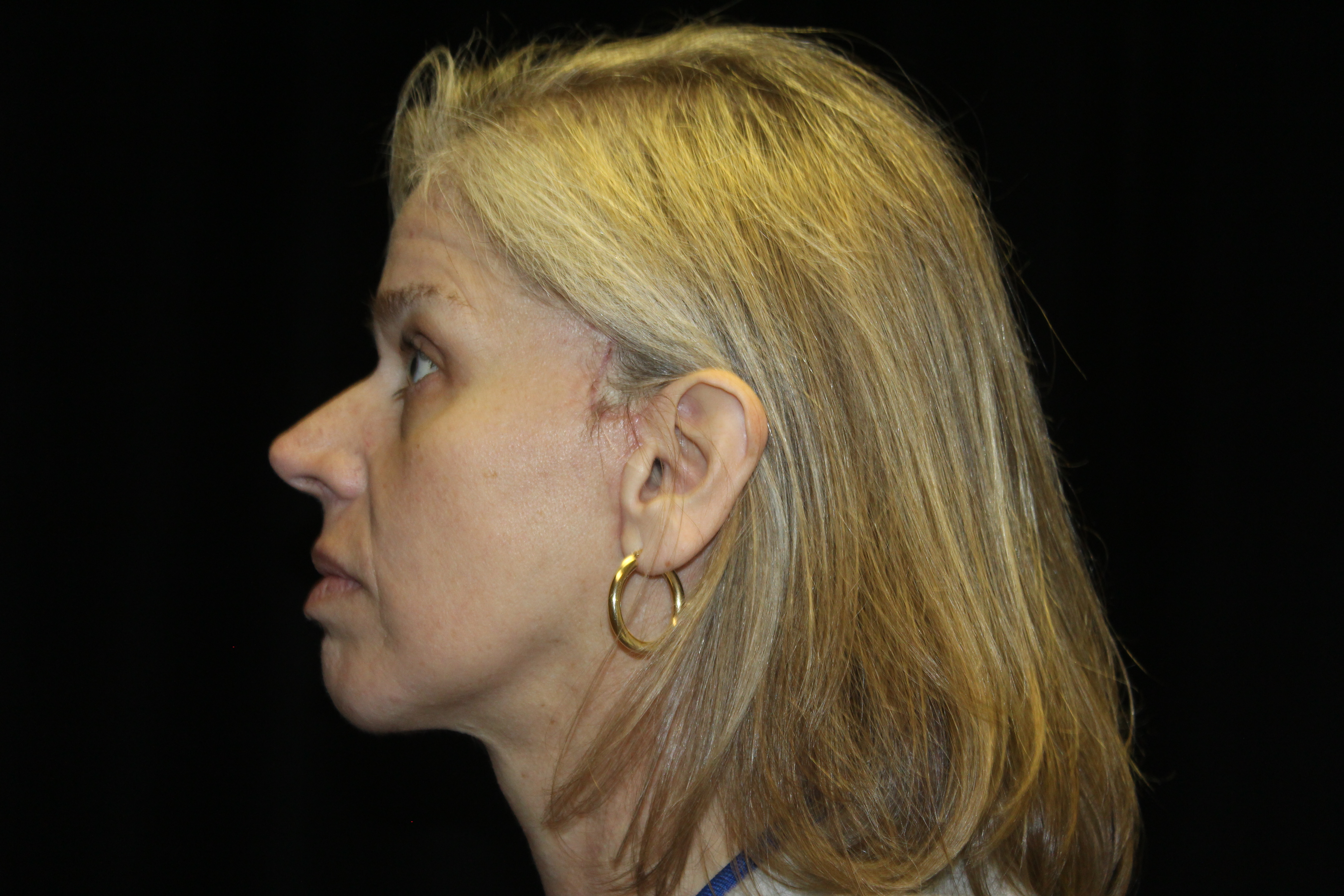 This is a 51 year old lady that desires some refreshening of her face. She is a very active lady but was starting to get some looseness in the face. She is losing some of the defined jaw line and getting some extra fat in her neck. She basically has generalized looseness in her face. She underwent facial and neck rejuvenation. As you can see, she has a nice, sharp angle to her neck. She has a defined jaw line. The whole face has been repositioned and rejuvenated. This procedure is done in the office with IV sedation.