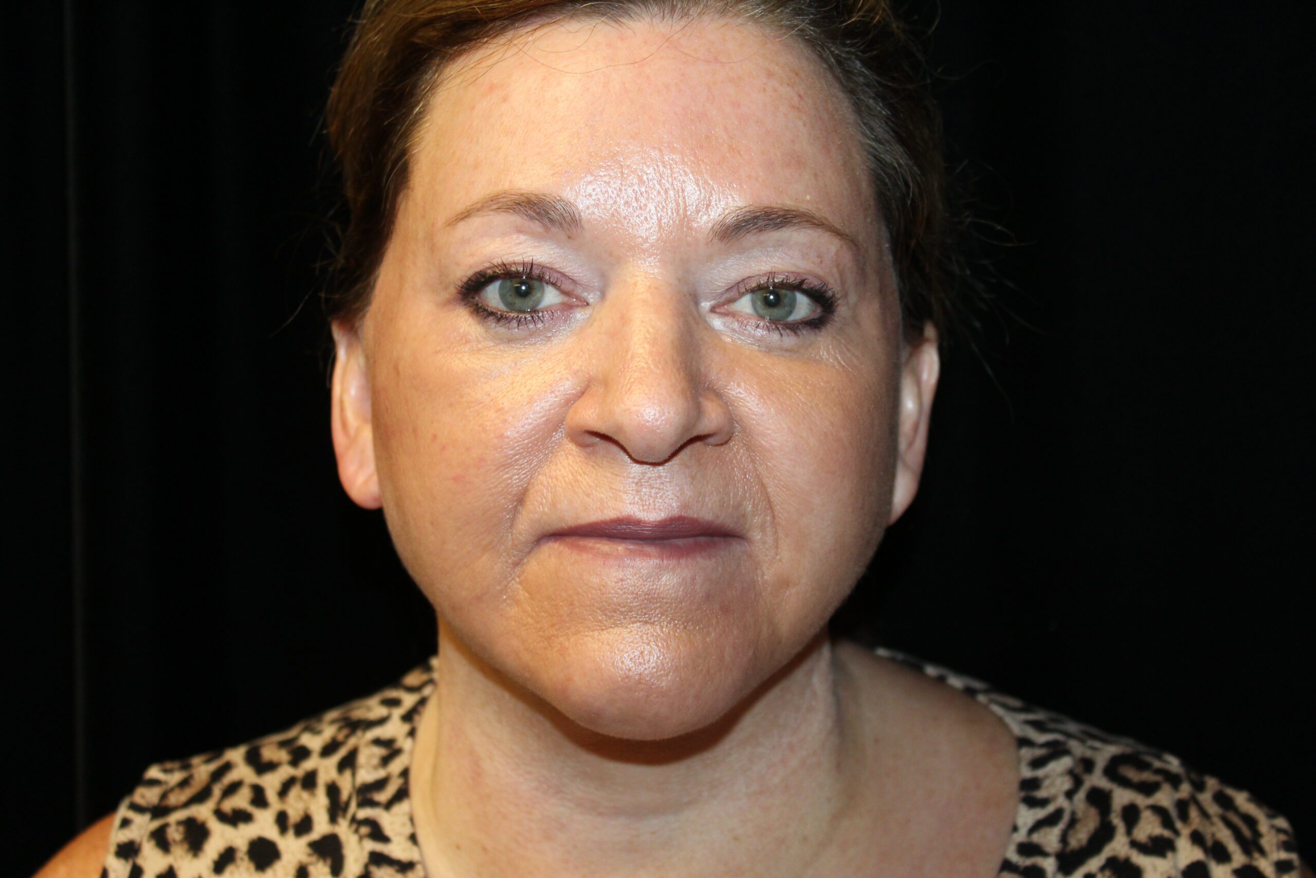 This is a 50YO lady that noticed some increased looseness in her face and neck. She has lost the definition of her jaw line. She had a lot of loose hanging skin and fat in the neck that bothered her. Also her brows were quite low. She underwent a face, neck, and brow rejuvenation procedure. Postoperatively she has a good contour to her neck and a defined jaw line. I also added some fat around the lower mouth area to fill in some indentions in that area. Her eyes appear much brighter and the crease across her upper nose has improved from the brow lift. This procedure is done in the office with IV sedation.