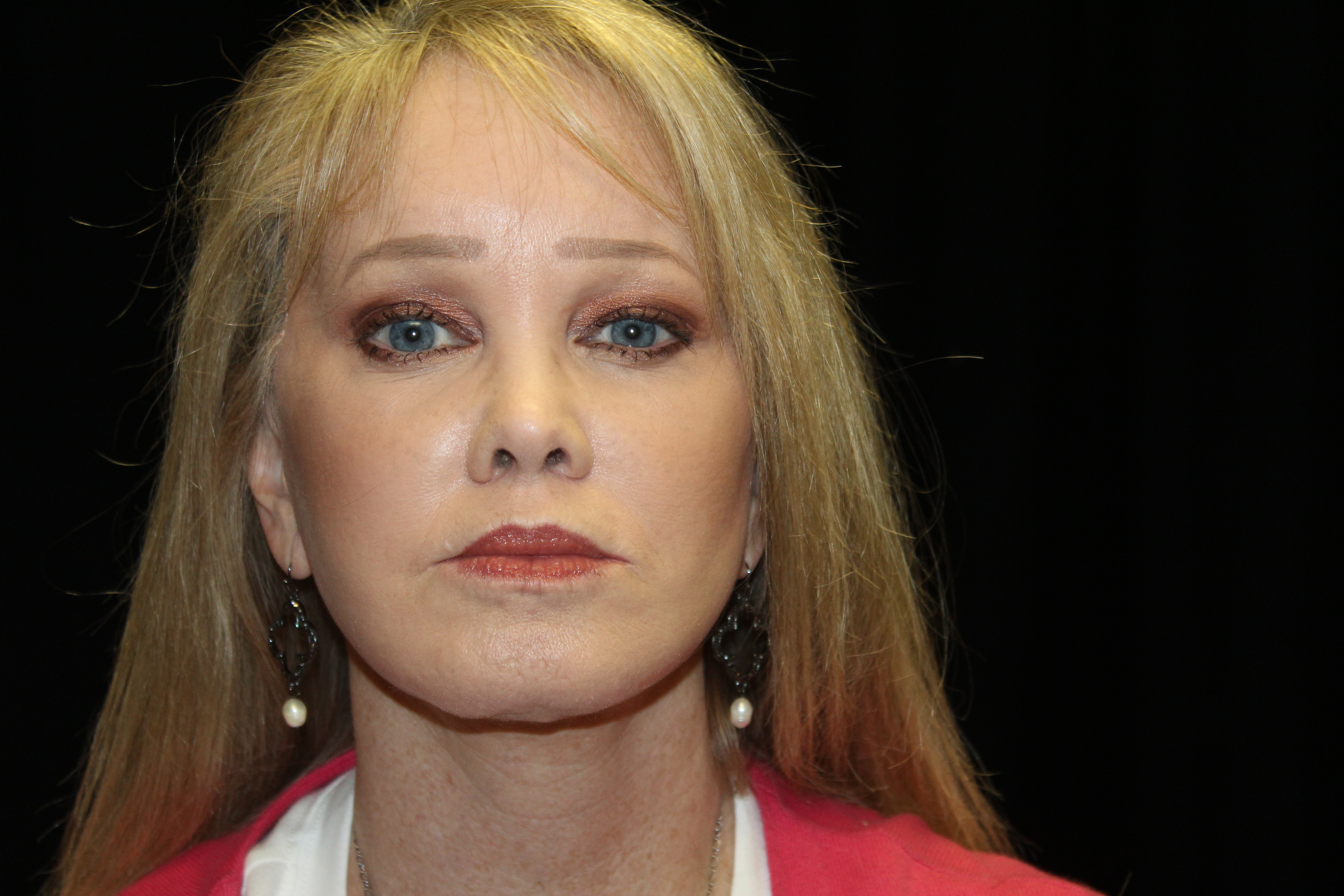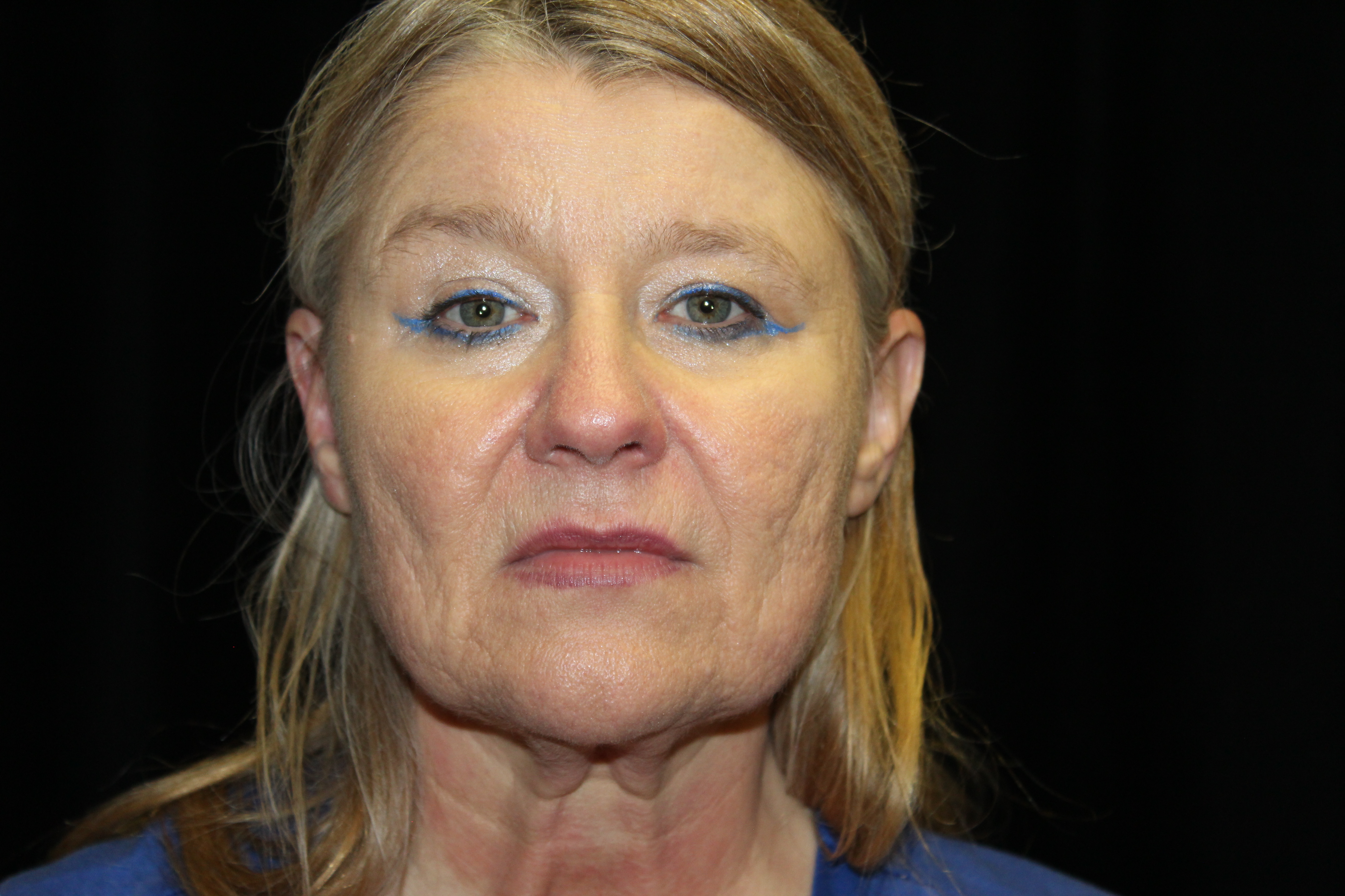 This is a 55 year old lady that started having some looseness of her face and neck. She lost her jaw line and did not like the turkey gobbler under her neck. Her brows were starting to descend just a little and she noticed her eyes were not as bright as they used to be. She underwent a face, neck, and brow rejuvenation in the office operating room. As you see post operatively, she now has a sharp neck line and well defined mandibular border. Her brows are up some and her eyes now appear much brighter.