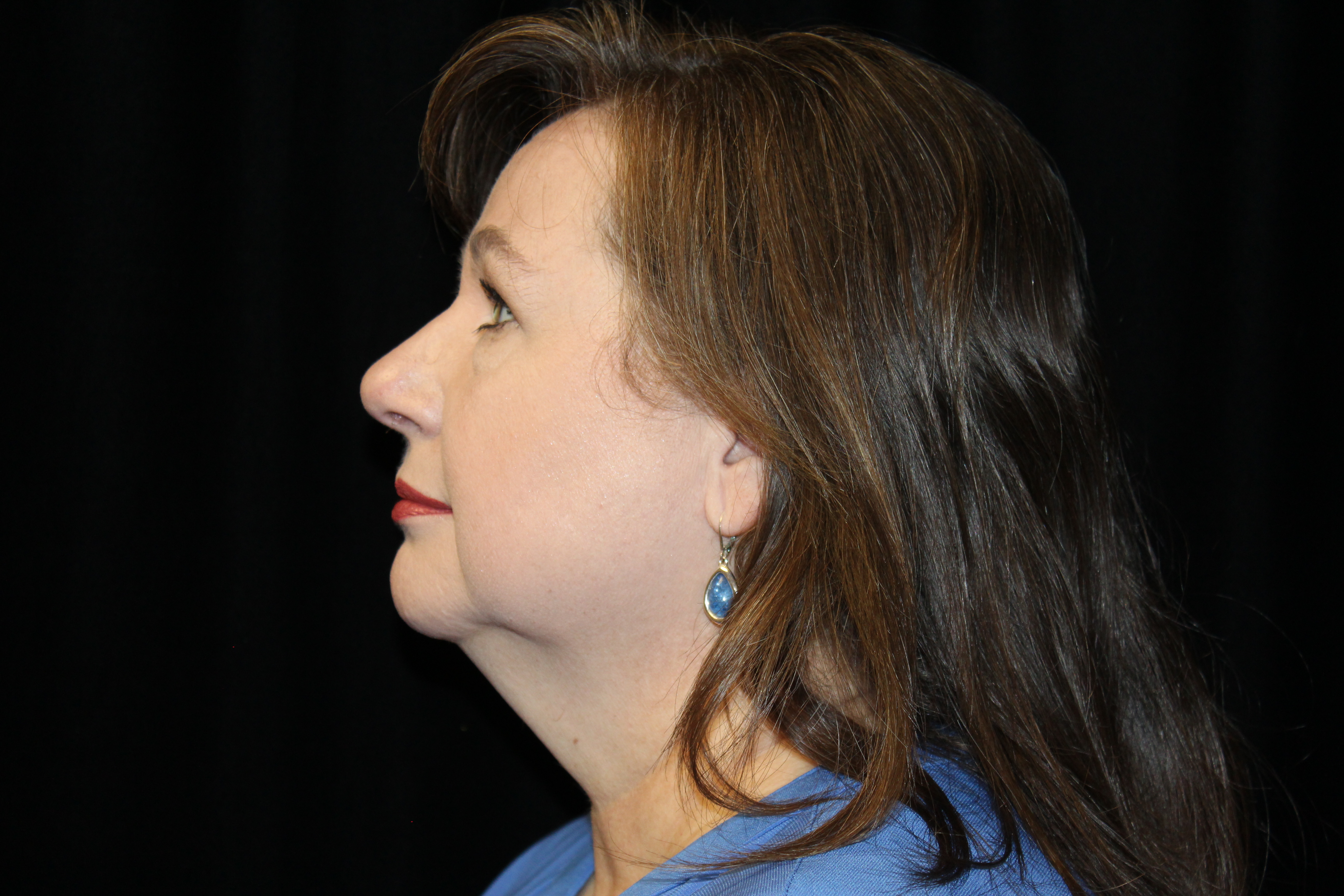 This is a 47YO lady that had a lot of concerns with excessive fat in the neck and also loss of the jaw line. She had no distinction of her face and neck. It appeared that the face just blended into the neck. This was due to the excessive fat in the neck and the looseness of the facial tissue. She underwent face and neck rejuvenation. As you can see, she now has a nice jaw line with a nice, sharp angle to her neck. Whenever you remove fat by trimming it out with liposuction, it usually stays gone for many years. The procedure is done with IV sedation in the office.
