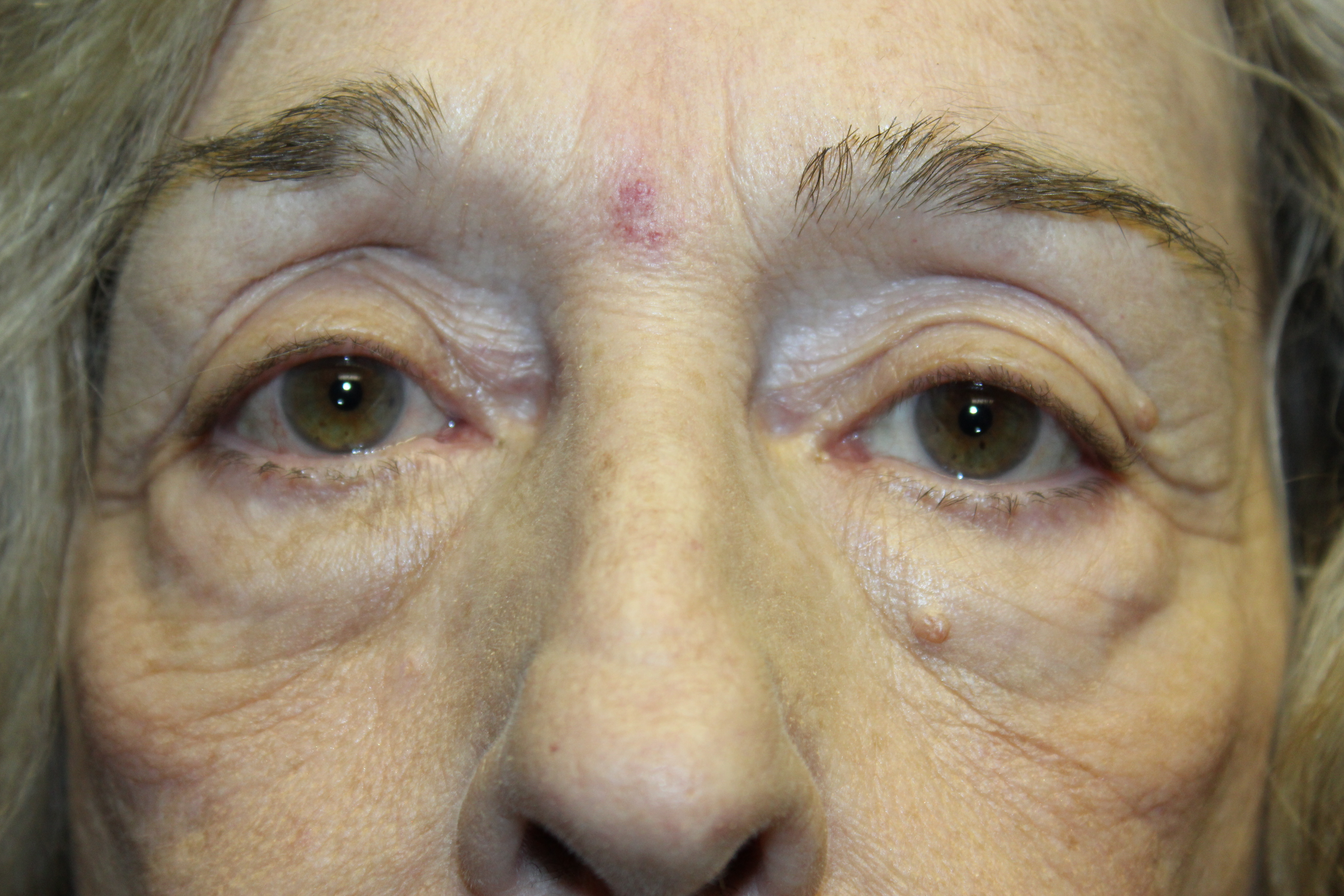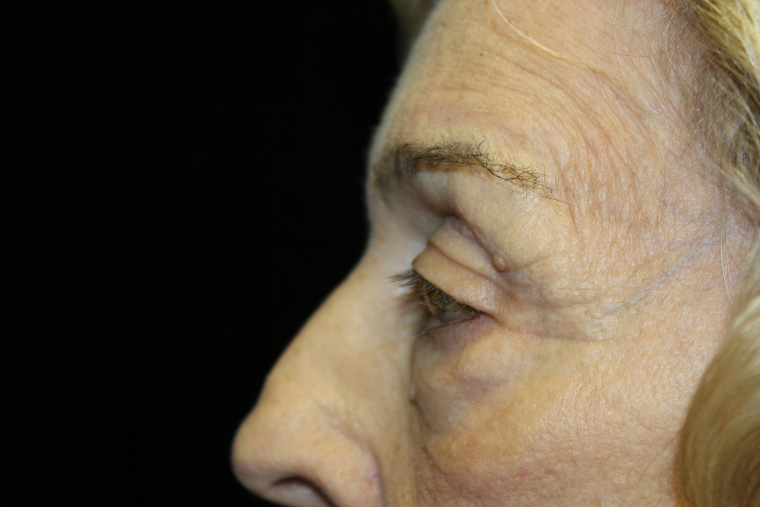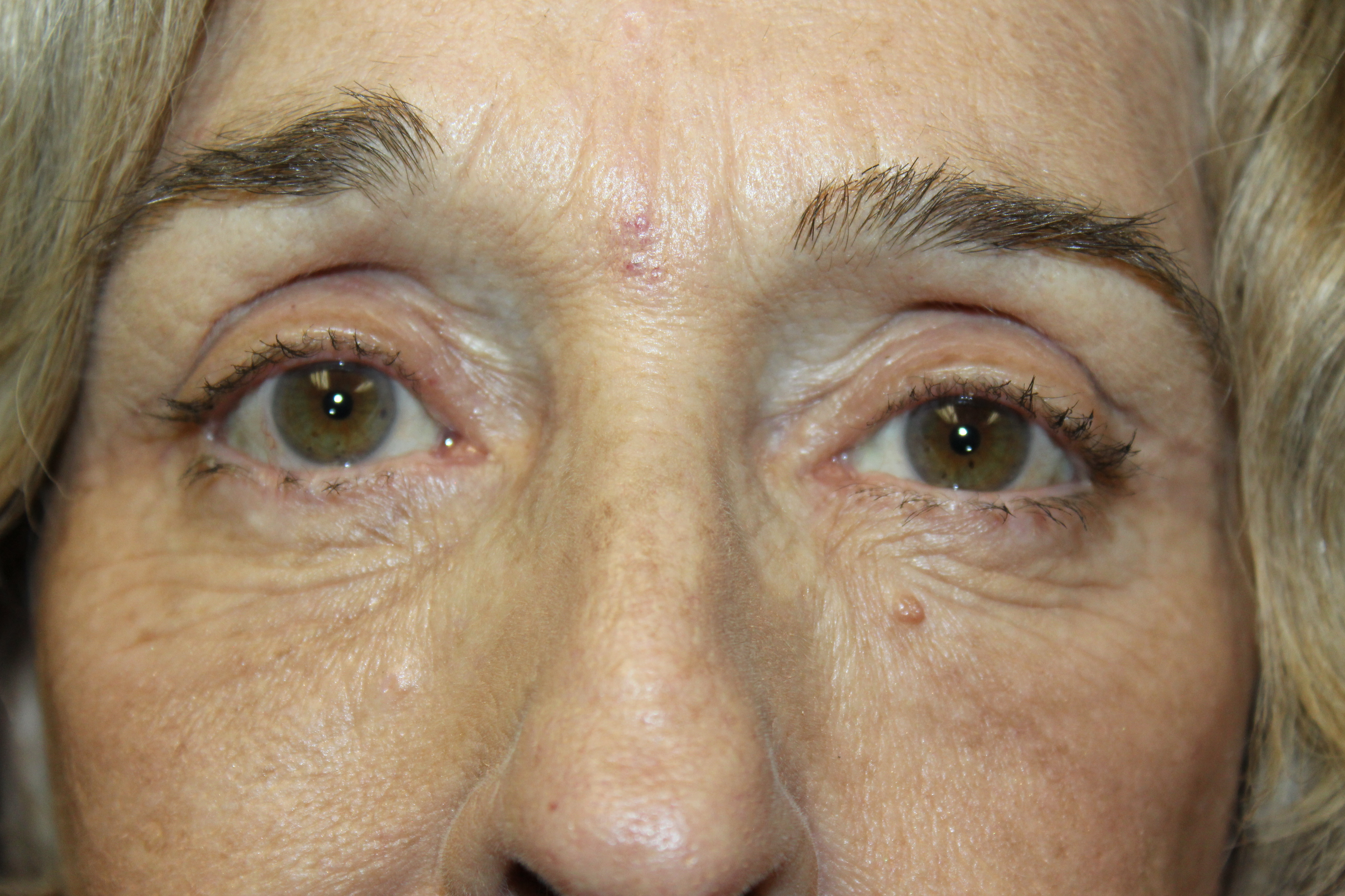 This is a lady that had really puffy lower eyelids with loss of fat below the puffy fat in the lower lids. She also had some extra skin in her upper lids and extra fat in the inside part of the upper eyelids. She underwent and upper and lower lid blepharoplasty with fat grafting. Postoperatively she looks much more vibrant and more youthful. She has gotten numerous complaints on her youthful appearance and is very pleased with her results. This procedure is done in the office with IV sedation.