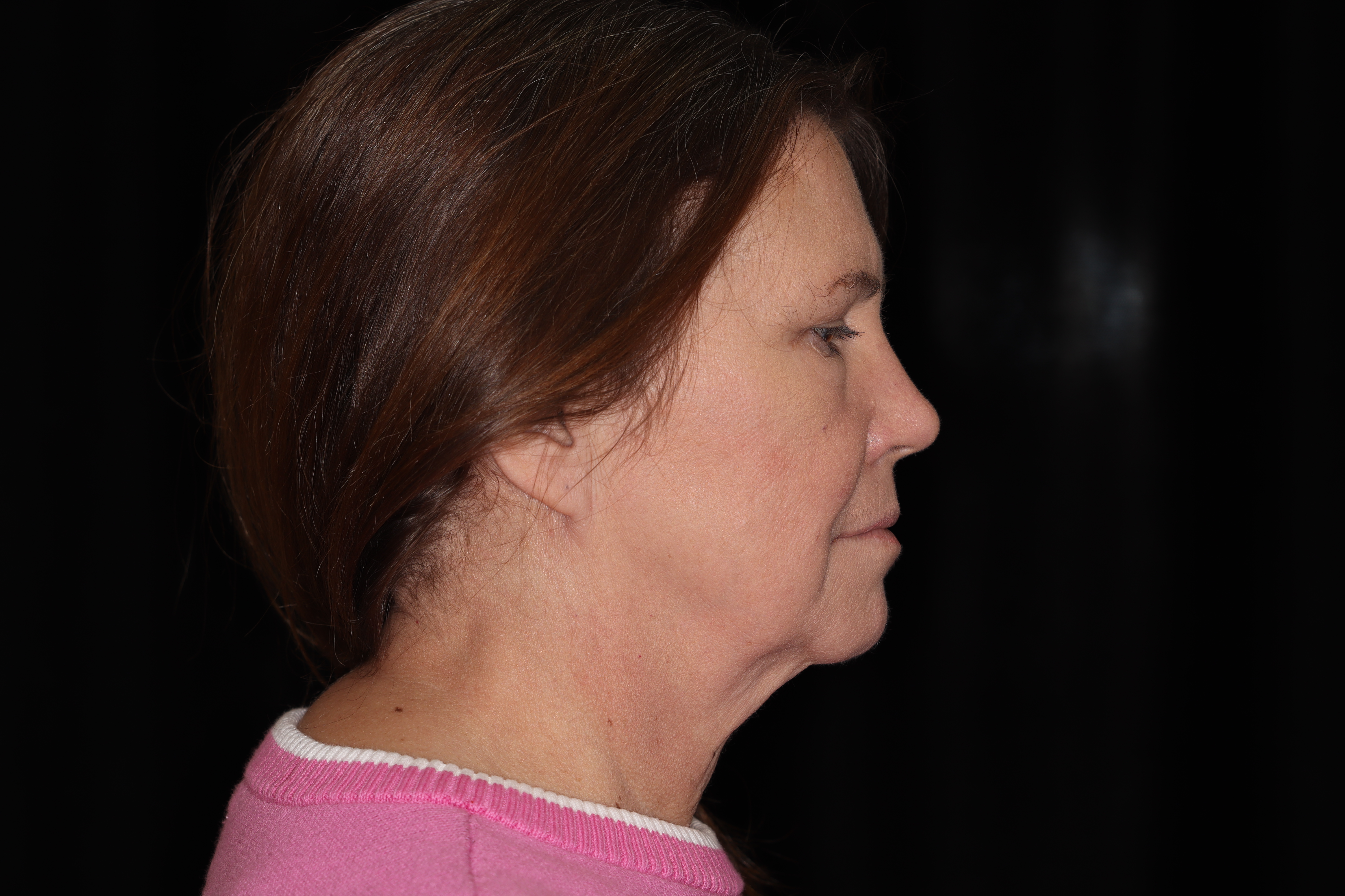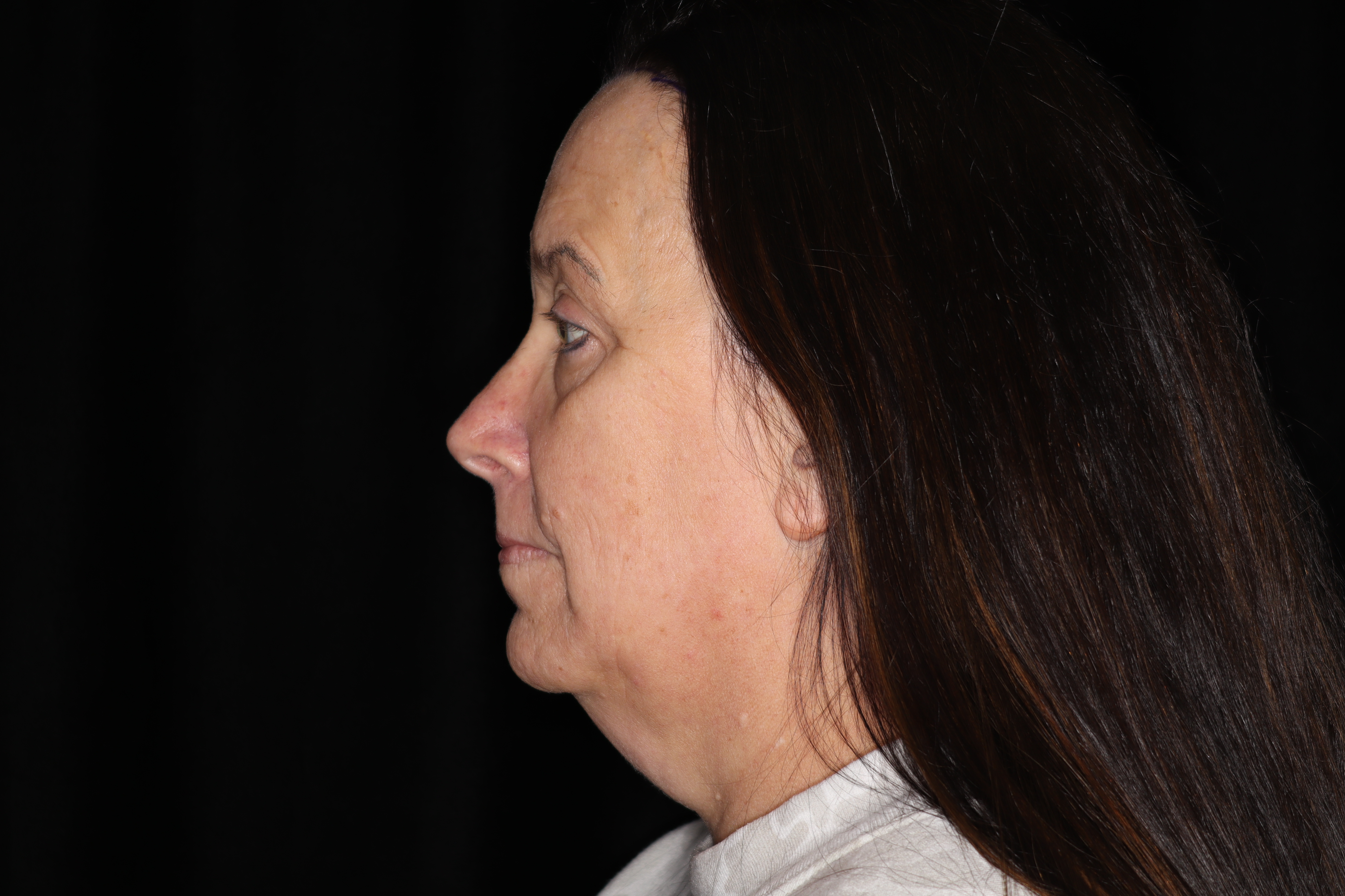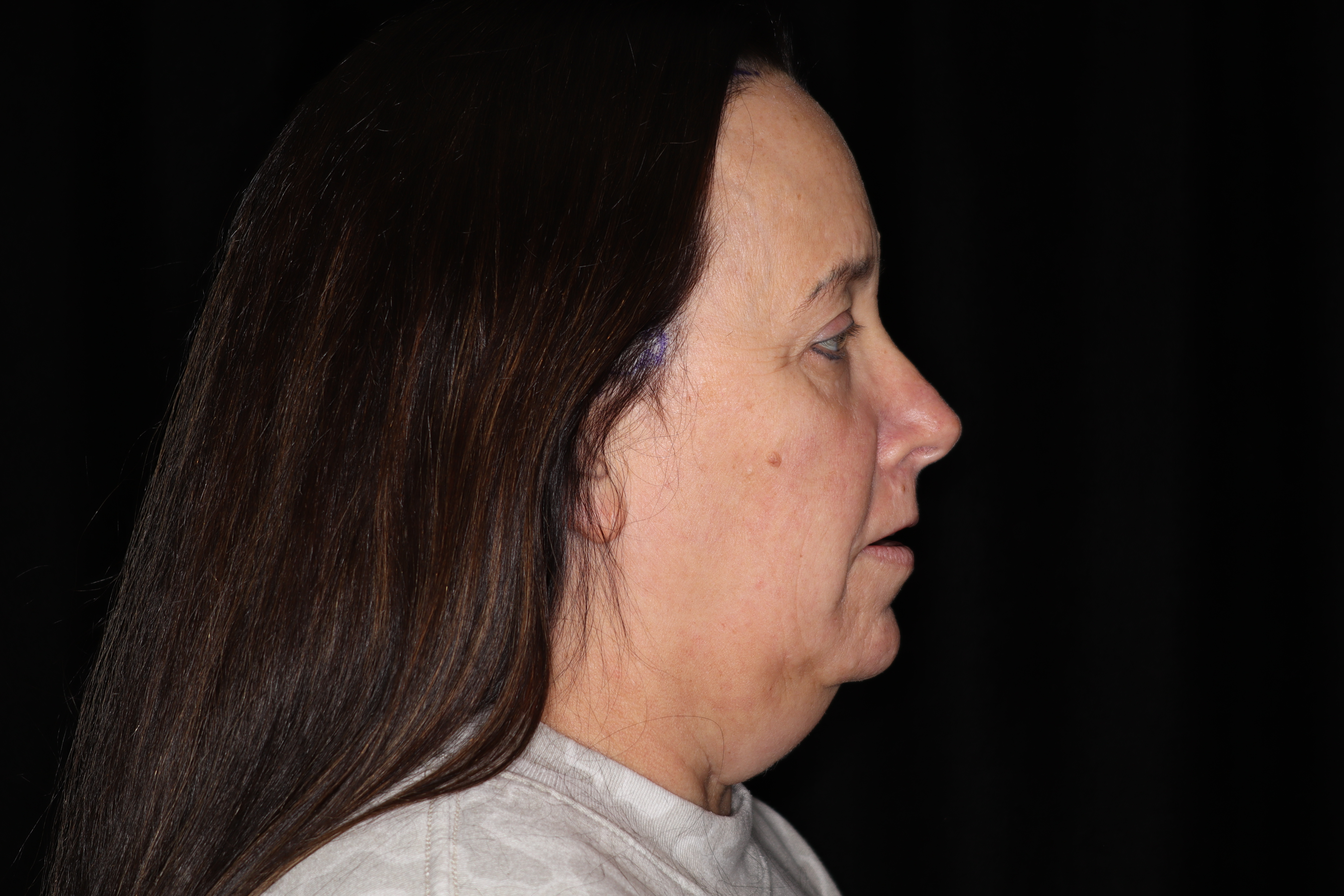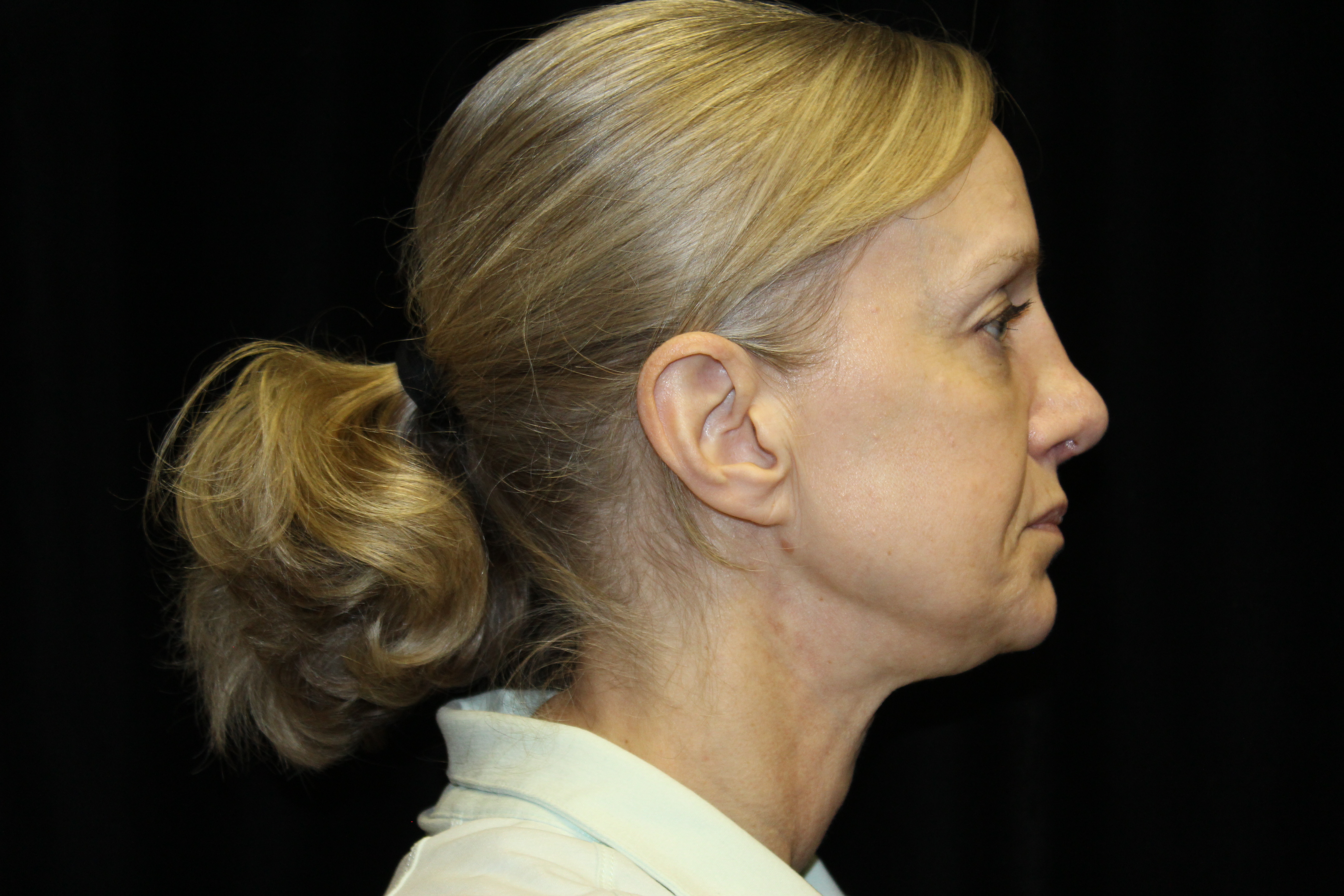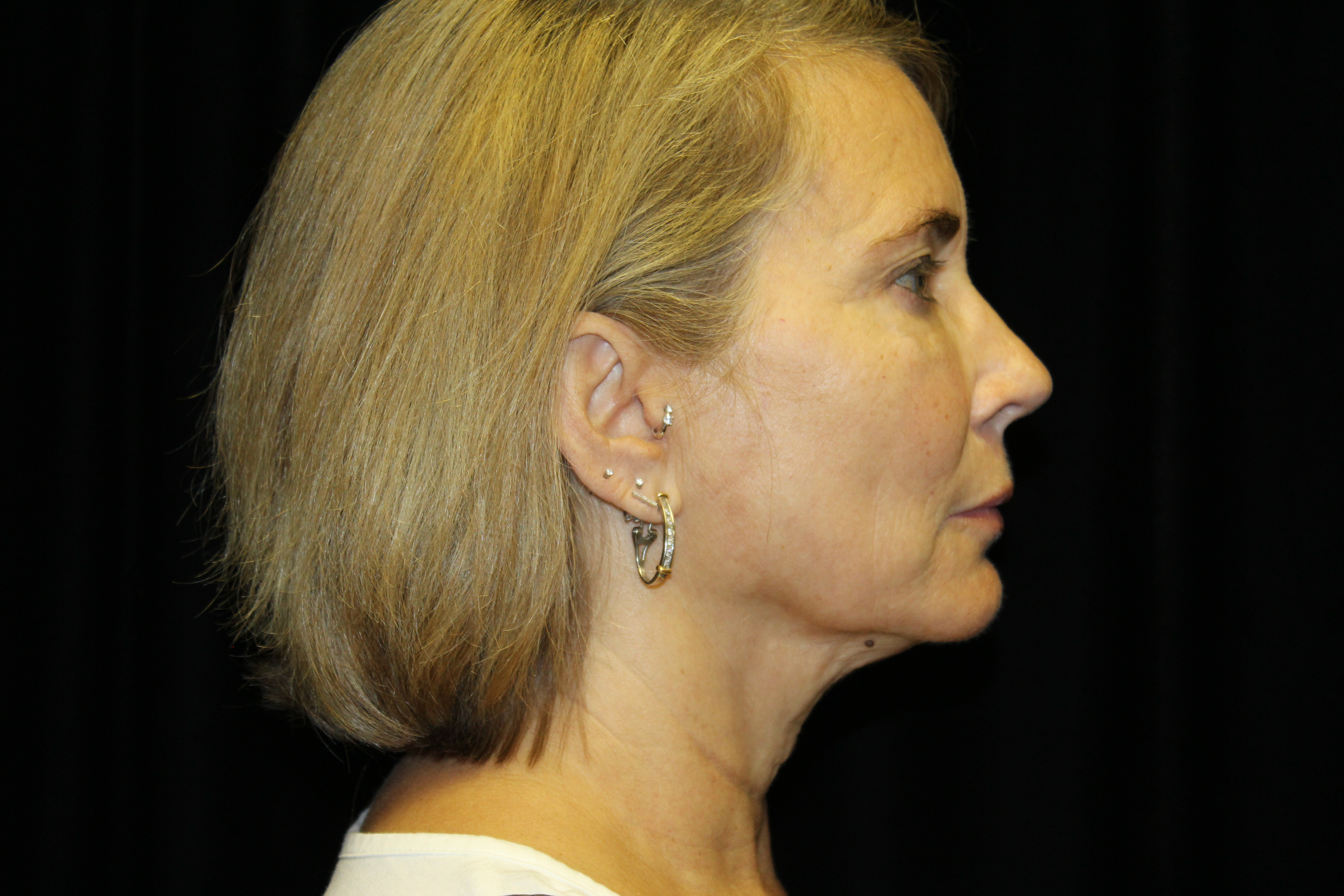 This is a 50YO lady that is starting to get some generalized looseness of her face and neck. She has lost the border of her mandible and had an obtuse angle to her neck. Ideally we like to have close to a right angle in the neck going up to the chin area.