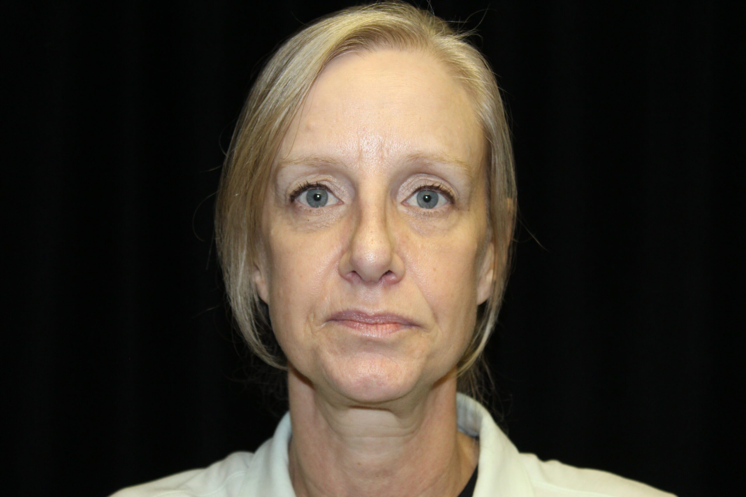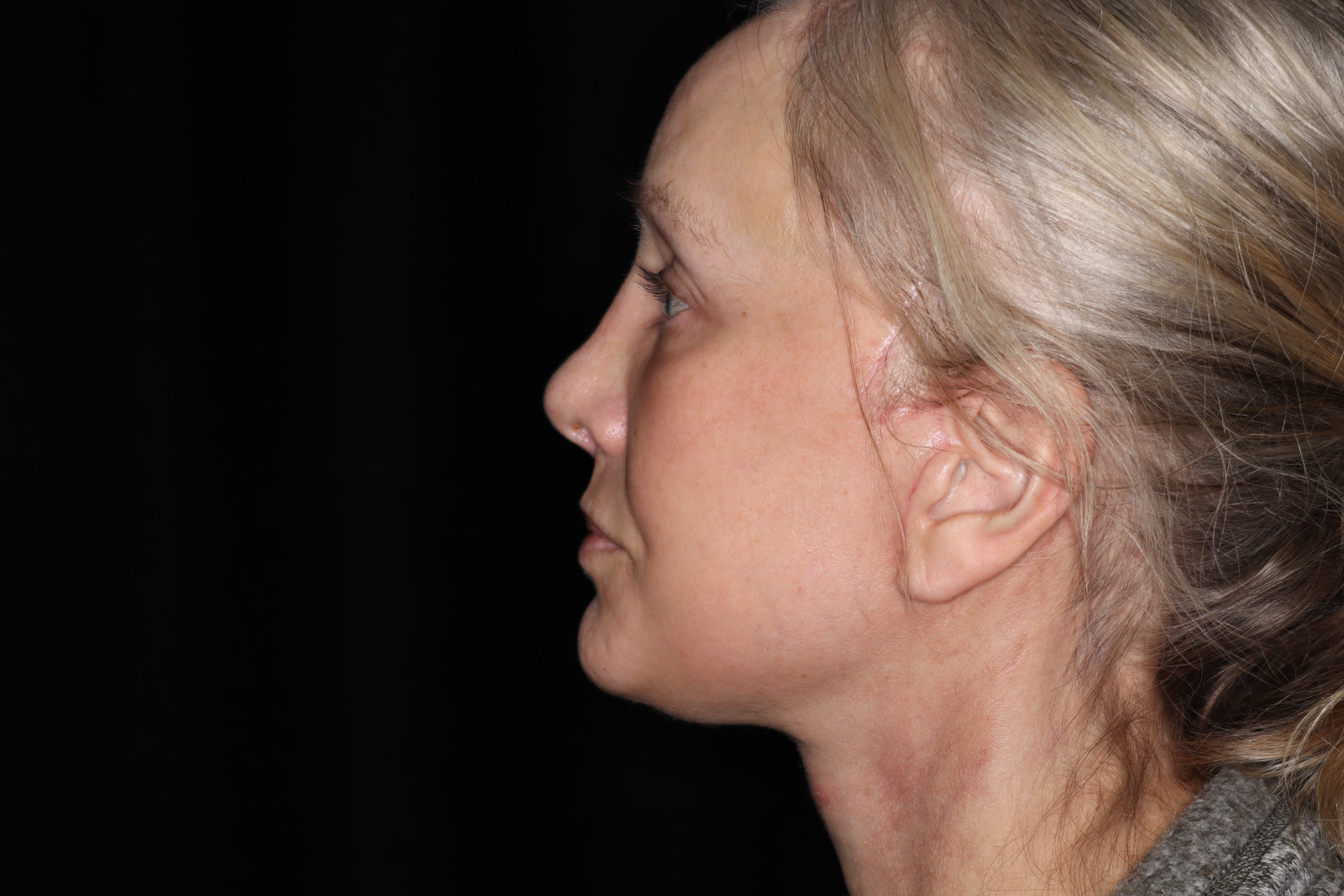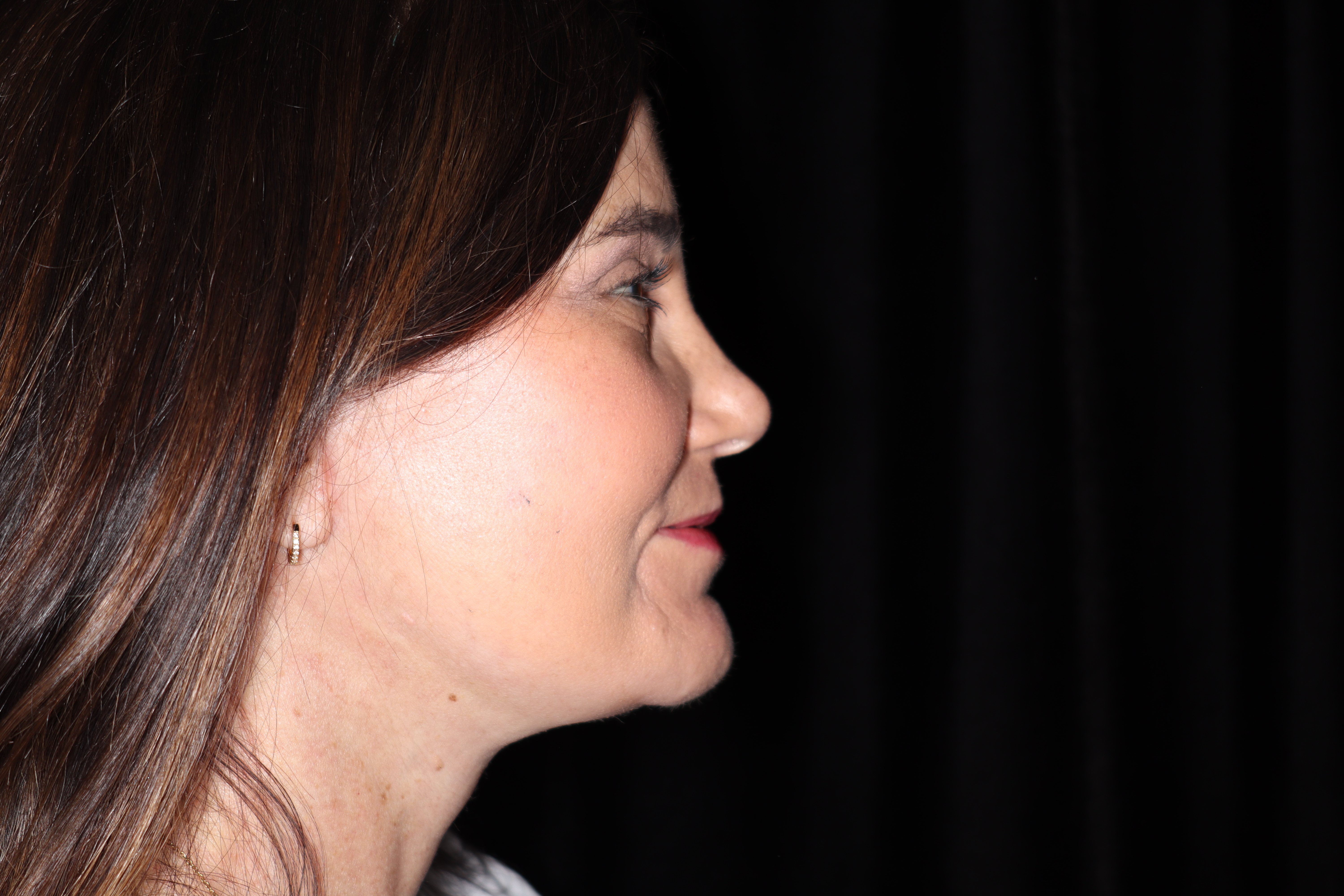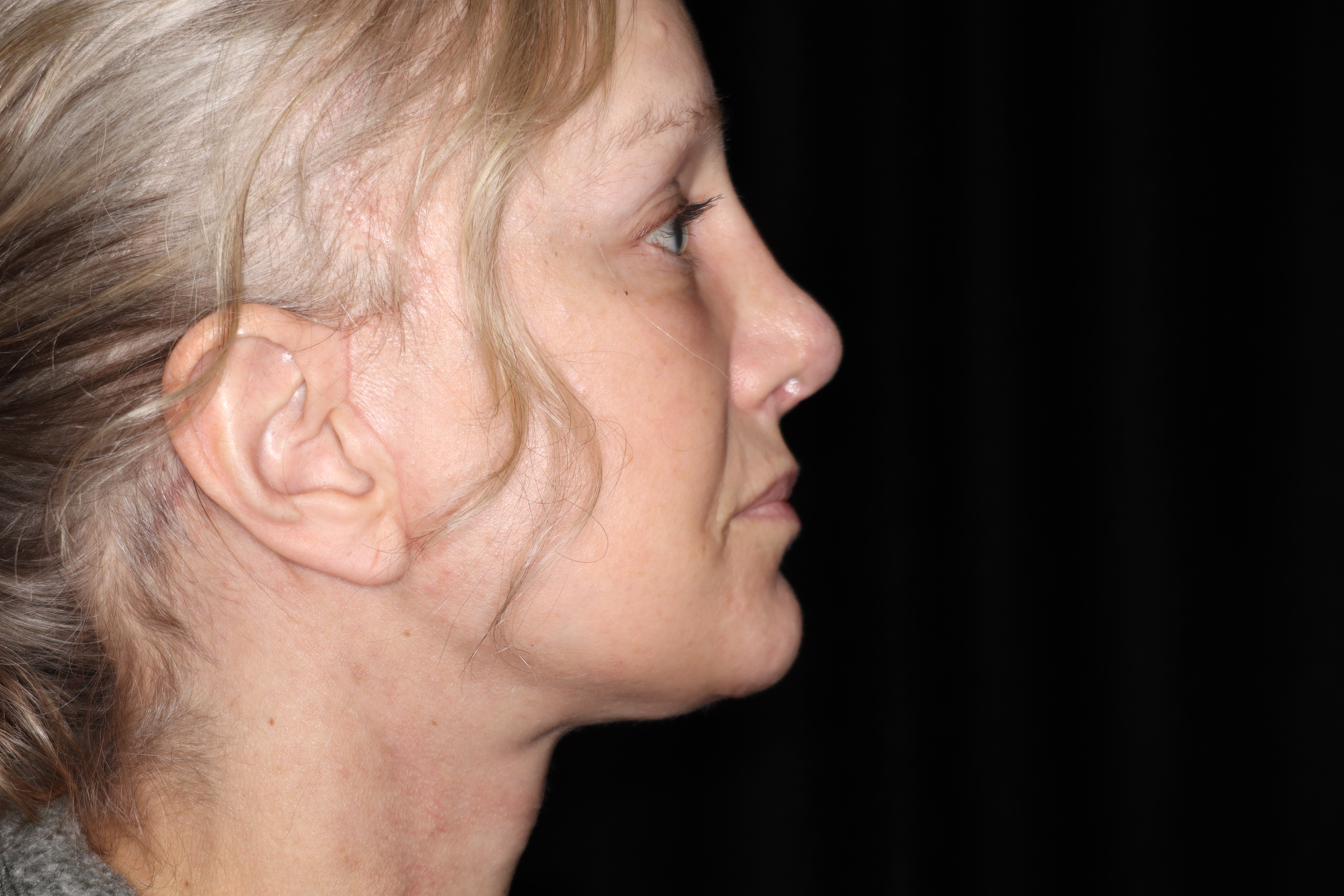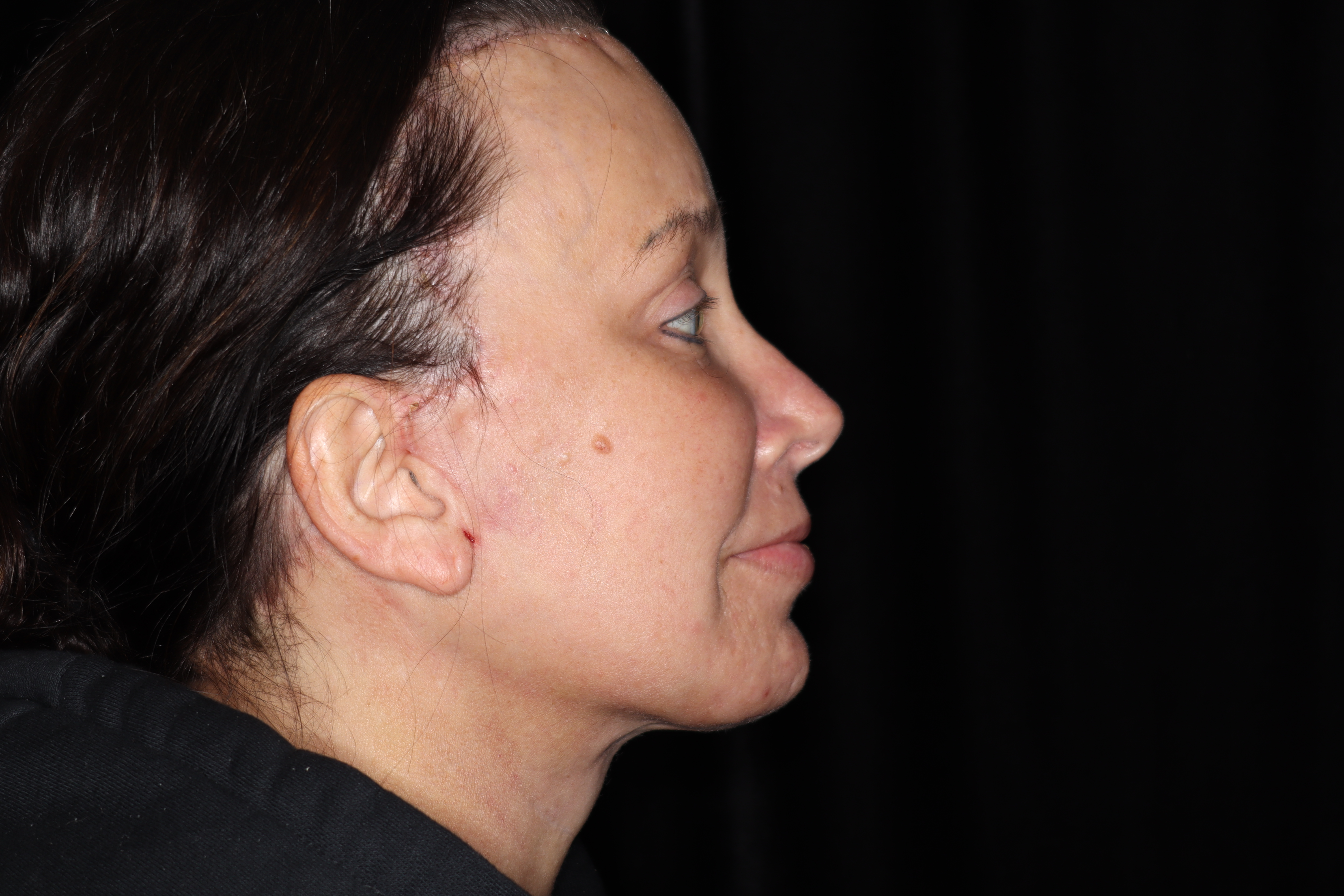 This is a 50YO lady that is starting to get some generalized looseness of her face and neck. She has lost the border of her mandible and had an obtuse angle to her neck. Ideally we like to have close to a right angle in the neck going up to the chin area.