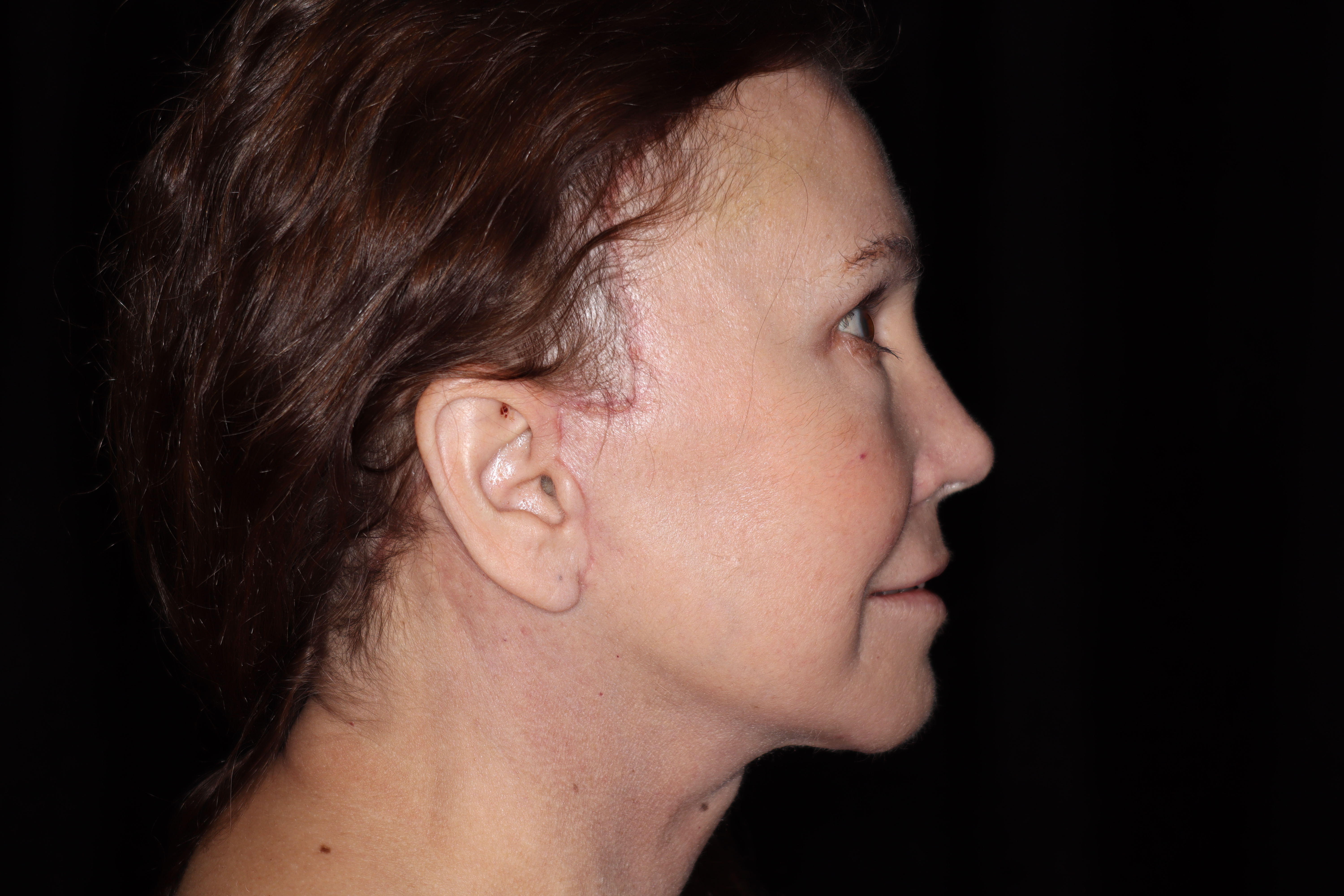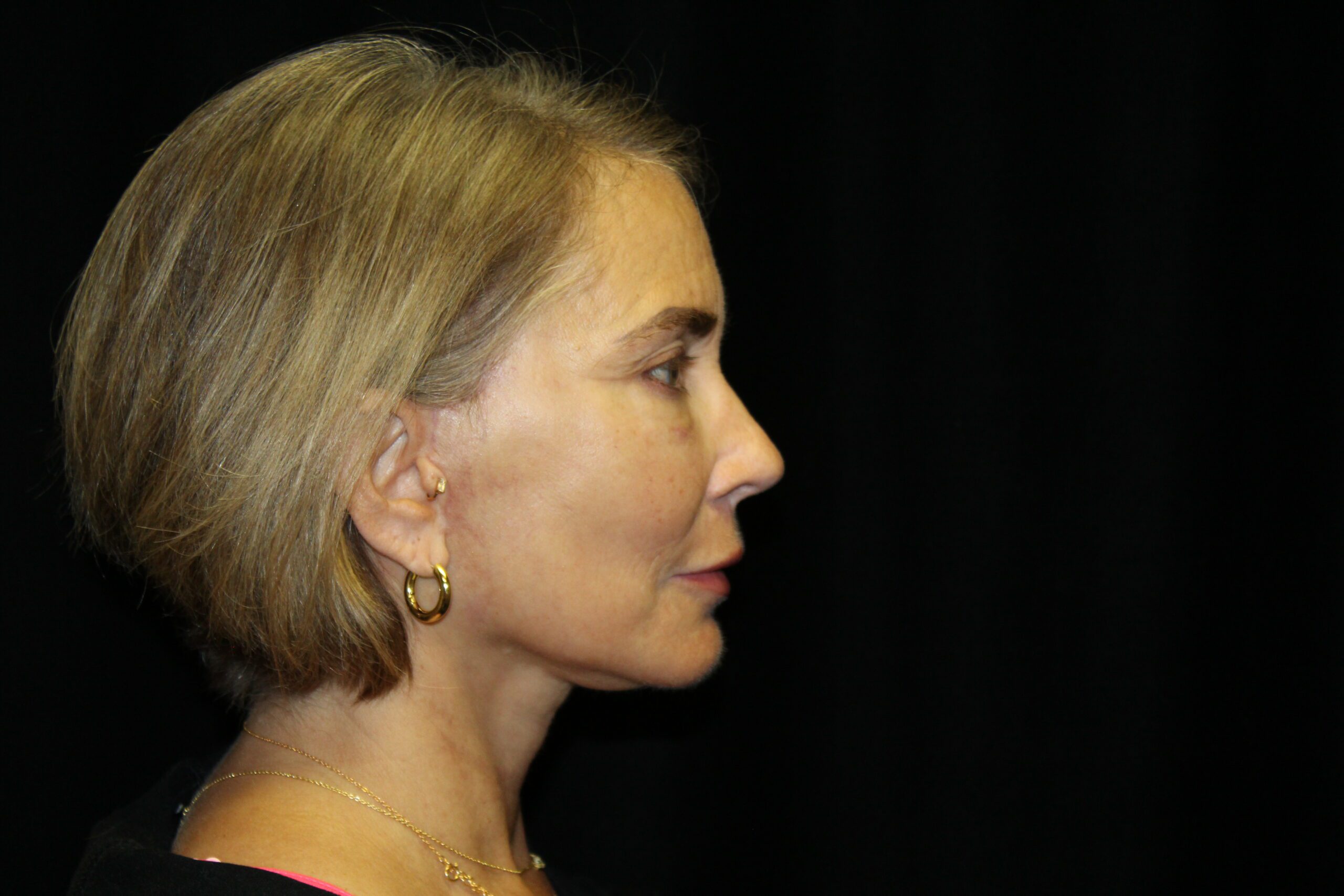 This is a 55 year old lady that desired some cosmetic improvement of her face. She was starting to get some looseness in her face and also in her neck. She had loss of fat in her face. She underwent a neck and lower face lift. She now looks much more refreshed but not overdone. She has a much better definition of her jaw line. This procedure is done with IV sedation in the office.