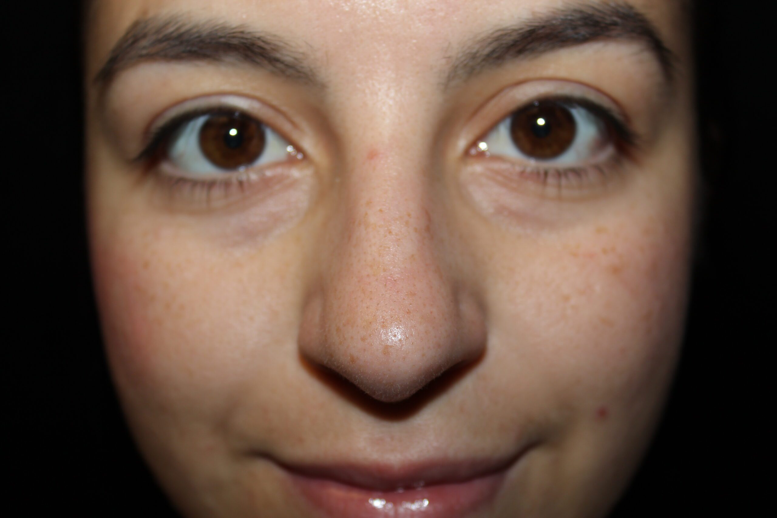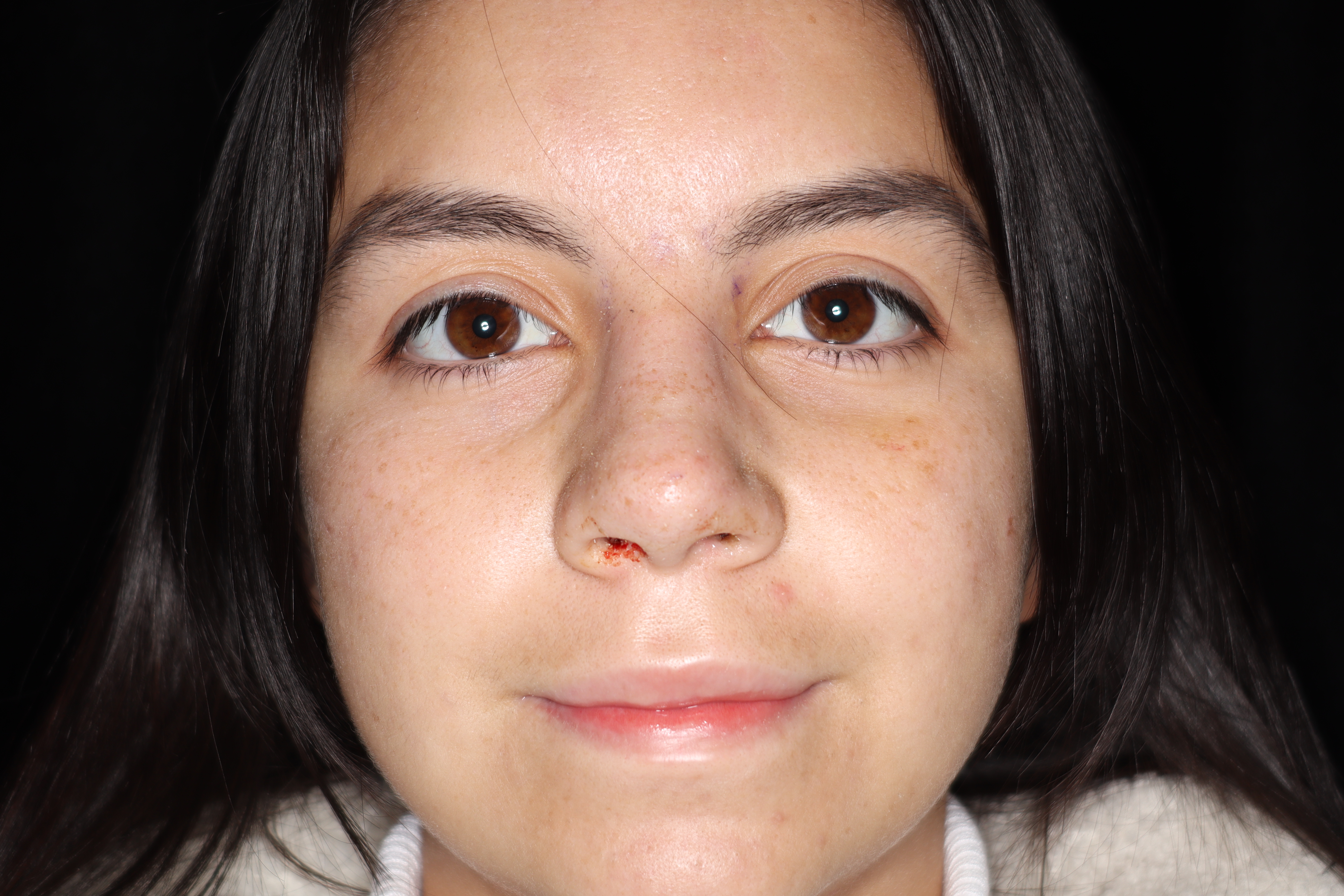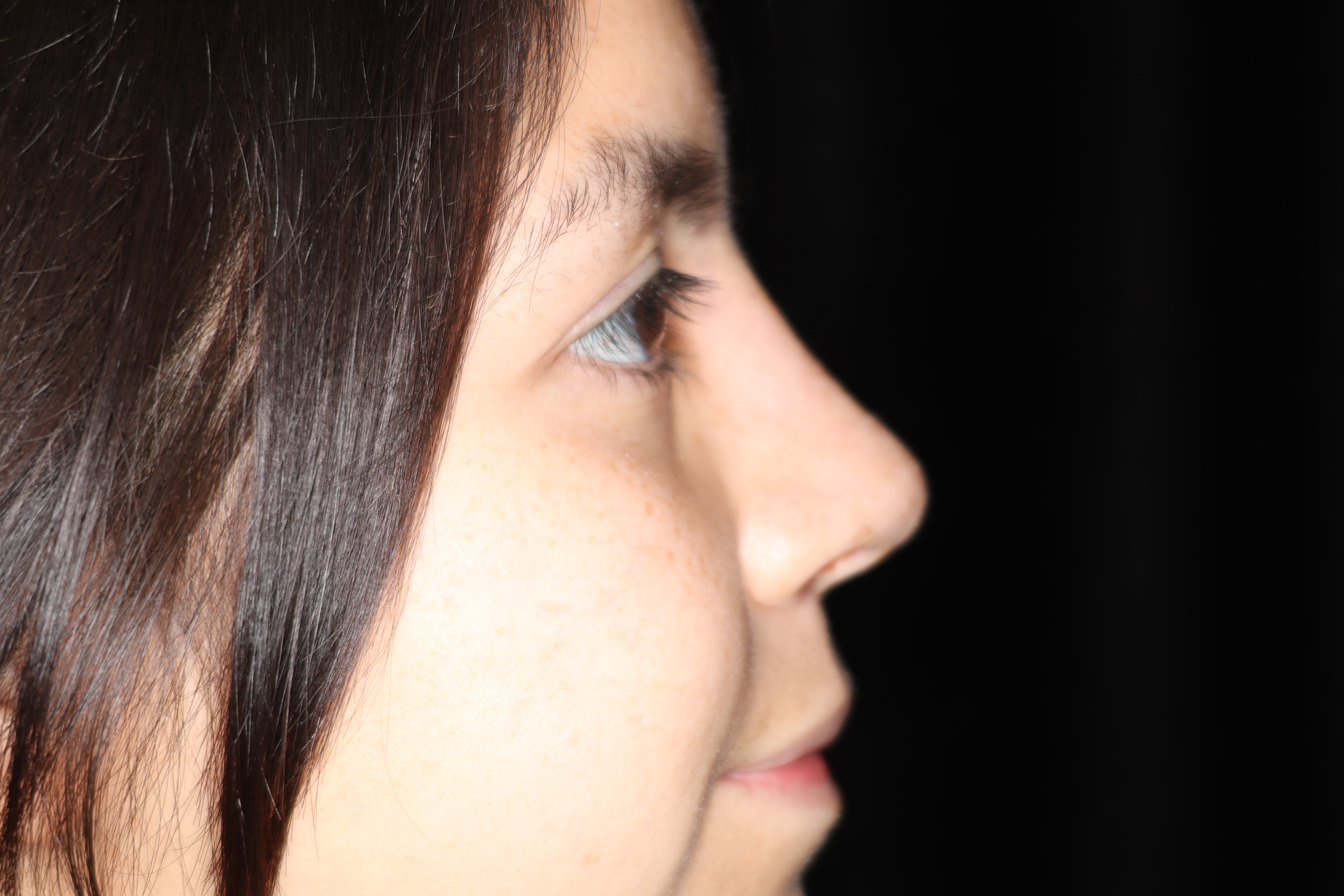 This is a young lady that has a very crooked nose with a small dorsal hump and fullness just above the lip area of the nose. This area is called a columella. It tends to hang and be prominent in that area. She underwent a rhinoplasty. As you see, the nose is much straighter and now has a gentle slope. We have gotten the fullness out of the lower part of the nose which is just above the lip.