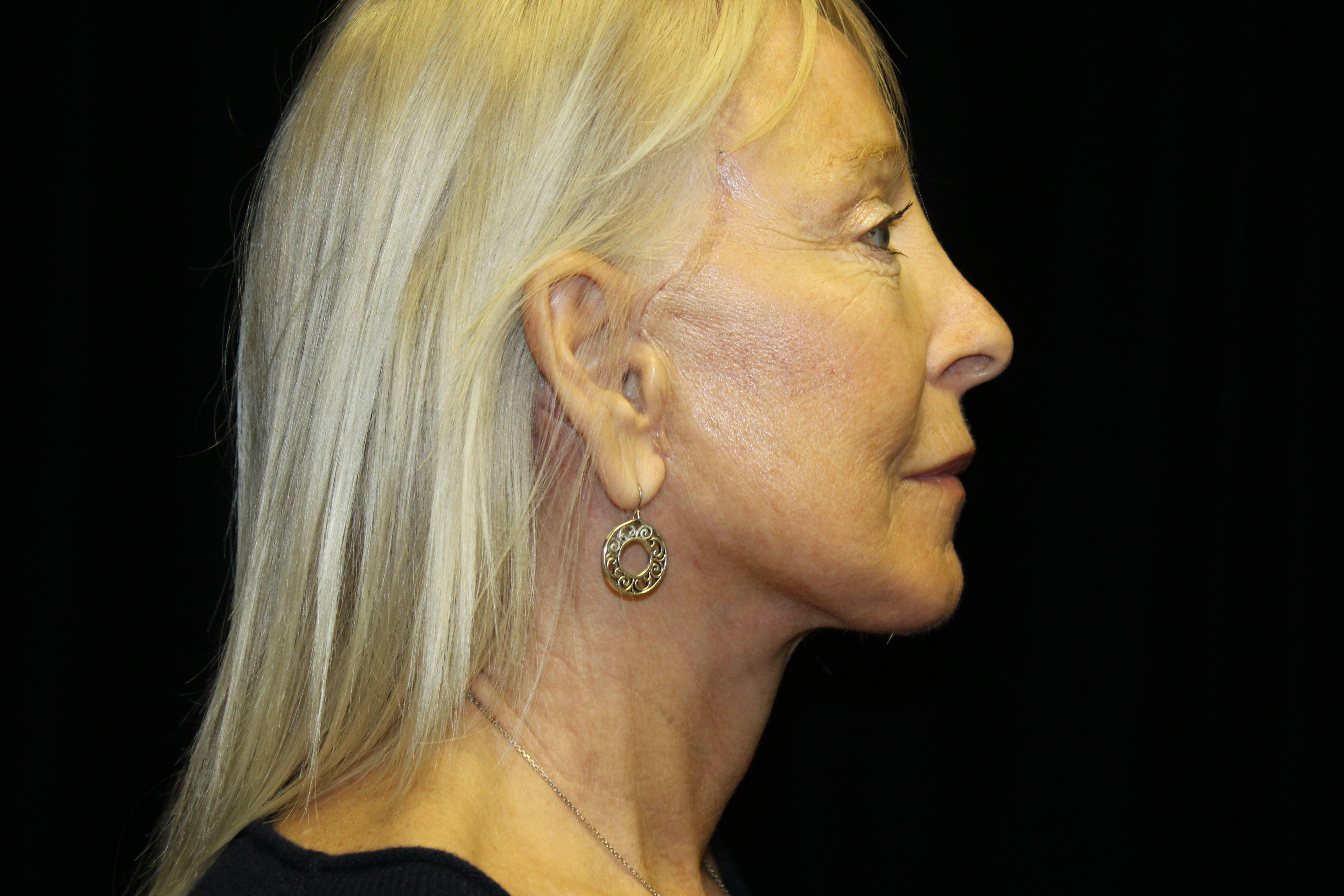 This is a 65YO lady that desired some cosmetic improvement of her face and neck. She was getting looseness in the face and neck area with prominent jowling. She also had a turkey gobbler in her neck. She underwent face and neck rejuvenation. I did some fat grafting to help fill in where she had lost fat in her face. We added fat to her buccal area and also the areas just in front of her jowl area. This helped smooth out the face and the jaw line. This procedure is done in the office.