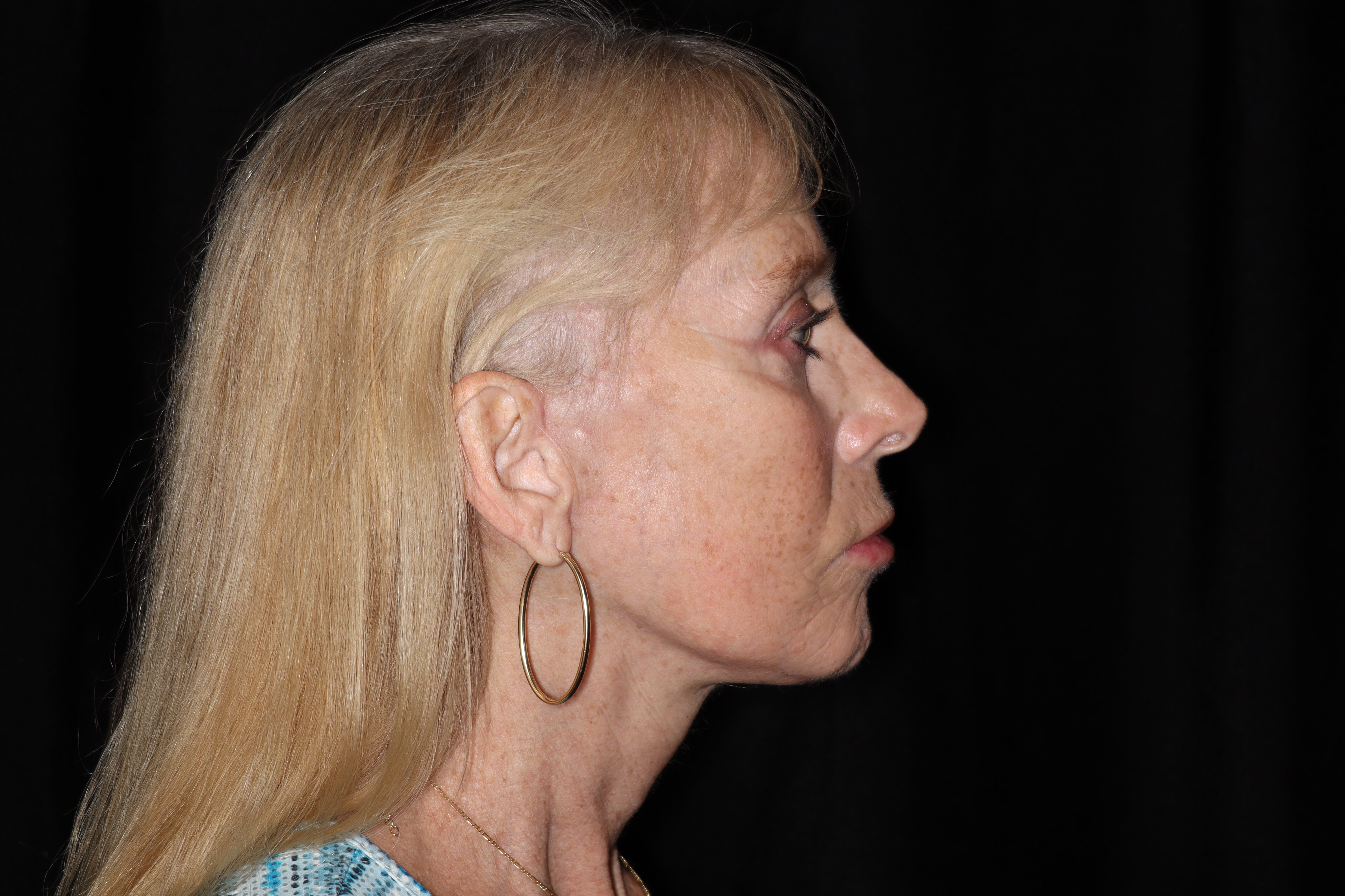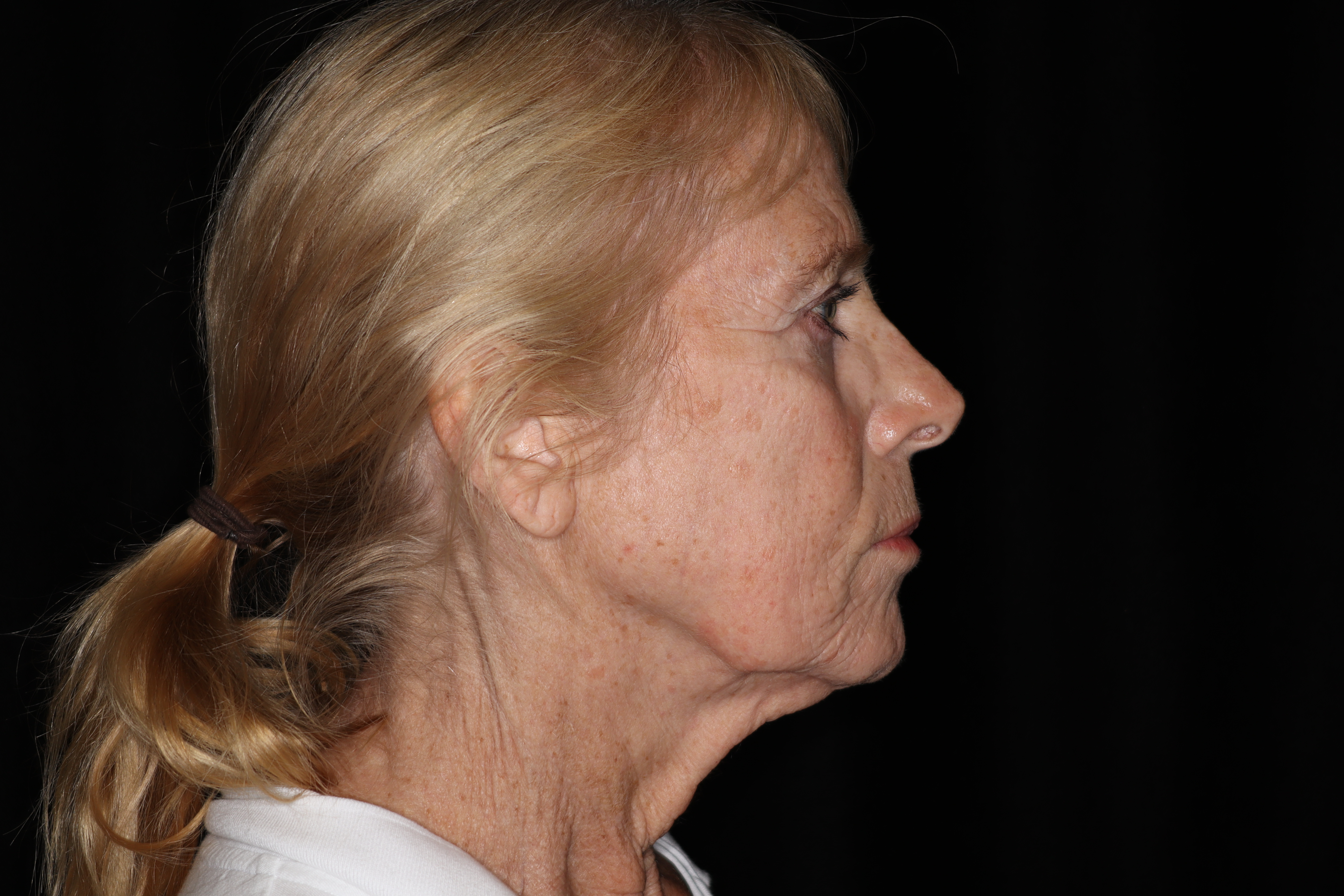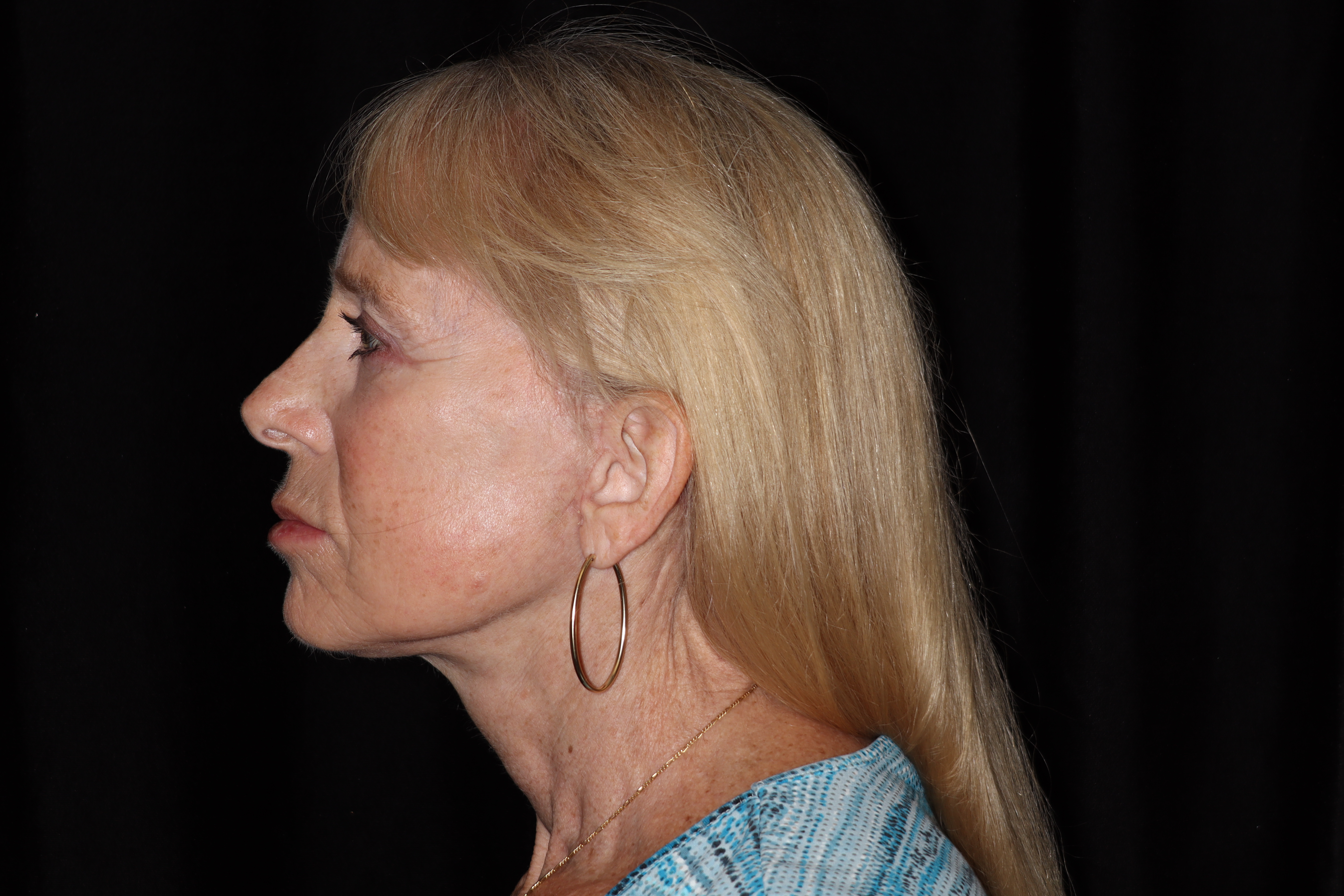 This is a 55 year old lady that desired some cosmetic improvement of her face. She was starting to get some looseness in her face and also in her neck. She had loss of fat in her face. She underwent a neck and lower face lift. She now looks much more refreshed but not overdone. She has a much better definition of her jaw line. This procedure is done with IV sedation in the office.